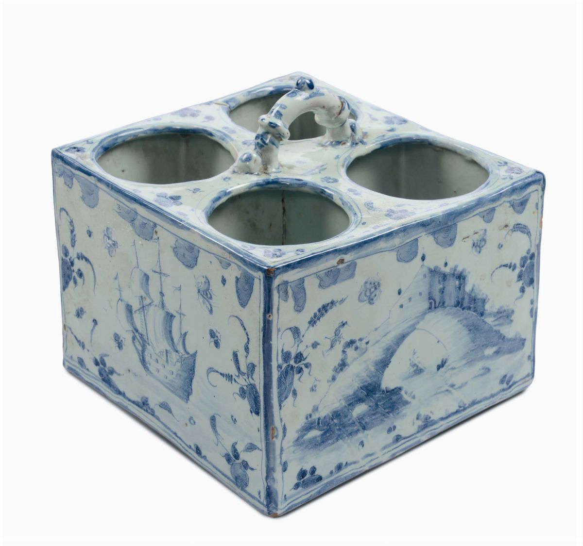 Portabottiglie in maiolica con decoro “a tappezzeria”, Savona XVII secolo
