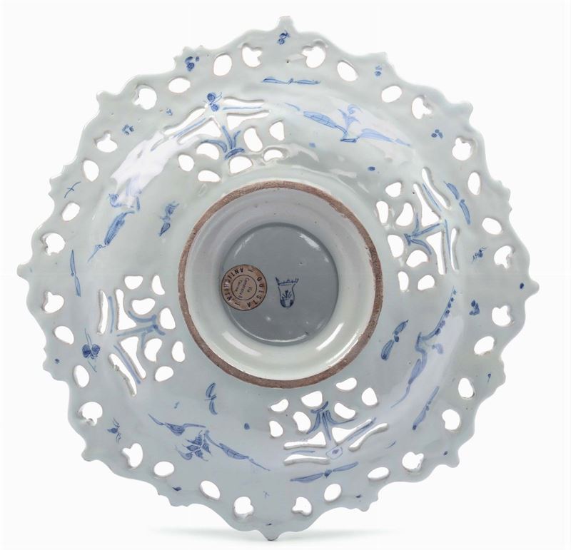 Sottocoppa traforata in maiolica traforata con decoro “a tappezzeria”, Savona XVII secolo