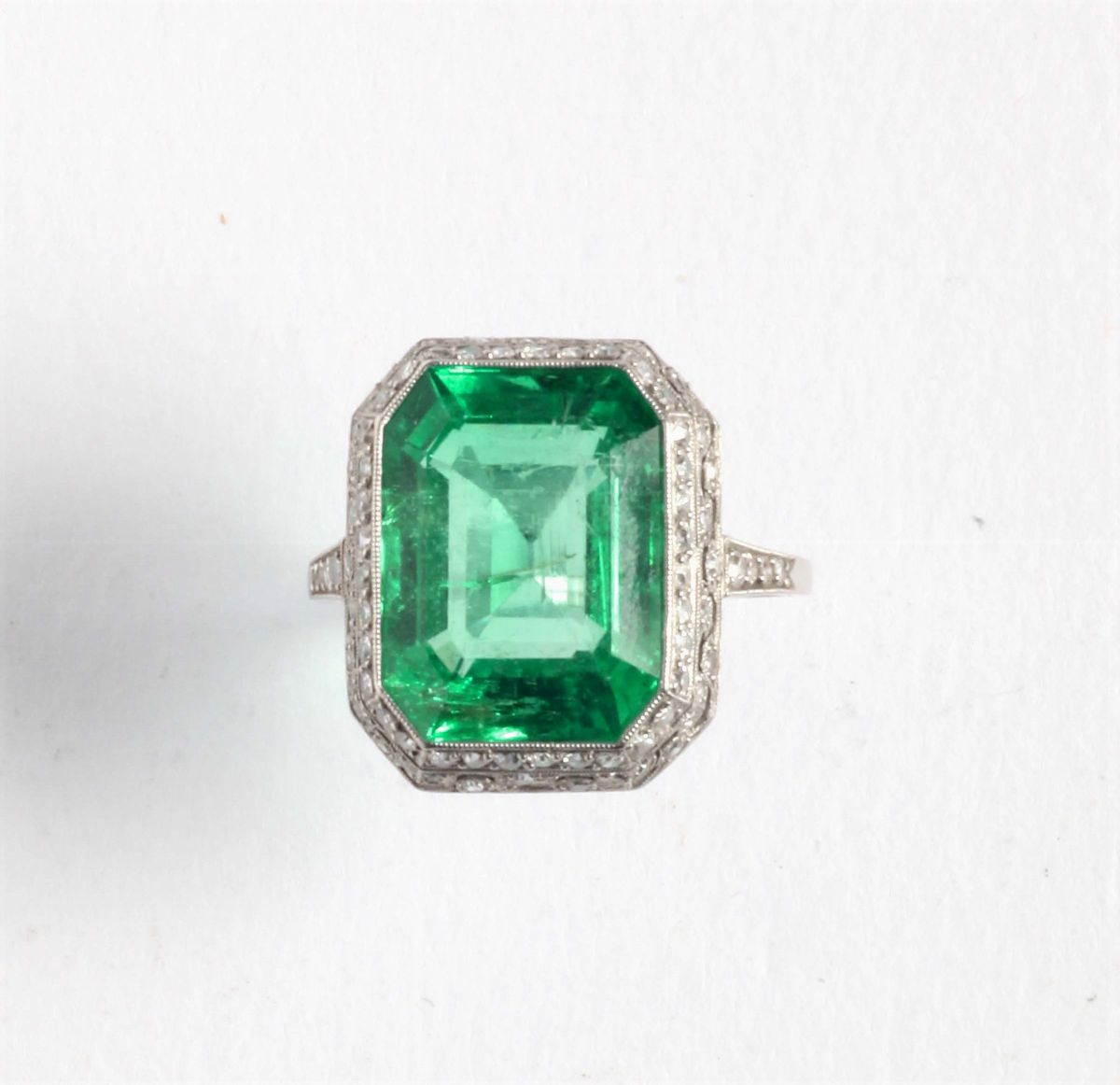 Anello con smeraldo e piccoli diamanti