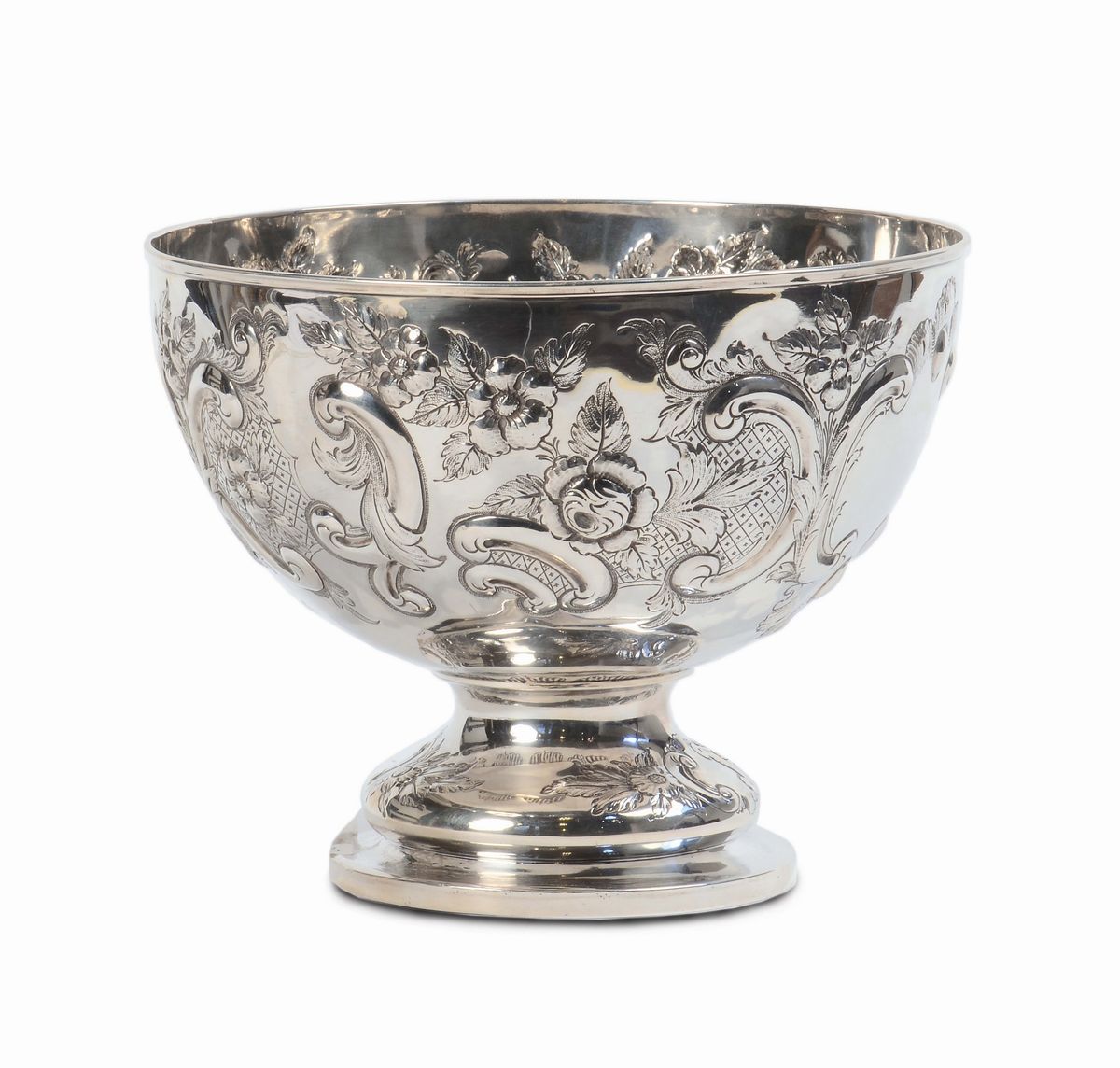 decoro a volute e fiori, gr. 870, altezza cm 20, diametro cm 26