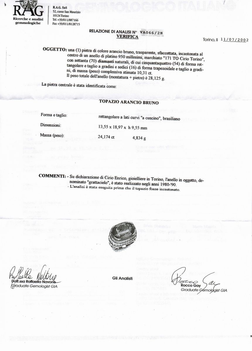 Enrico Cirio, Torino 1990. Grattacielo anello con grande topazio brasiliano di ct 24,17