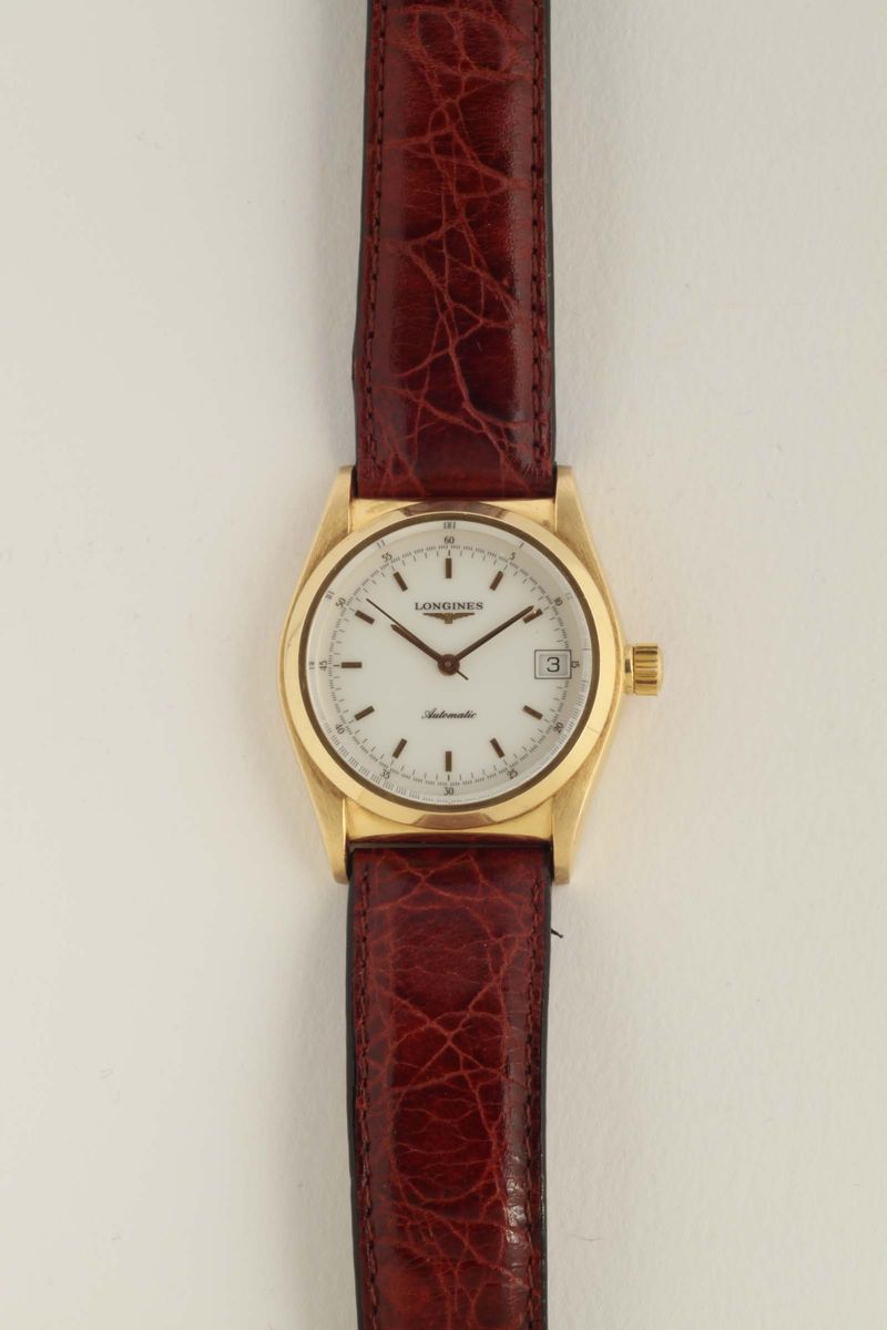 quadrante con datario, cassa in oro giallo, automatico, cinturino di pelle