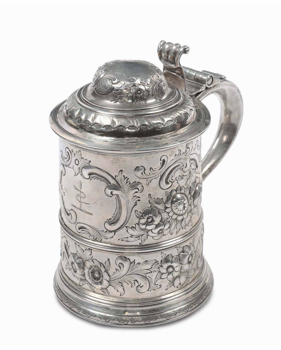 Tankard in argento inciso e sbalzato, Londra, Regina Vittoria 1857