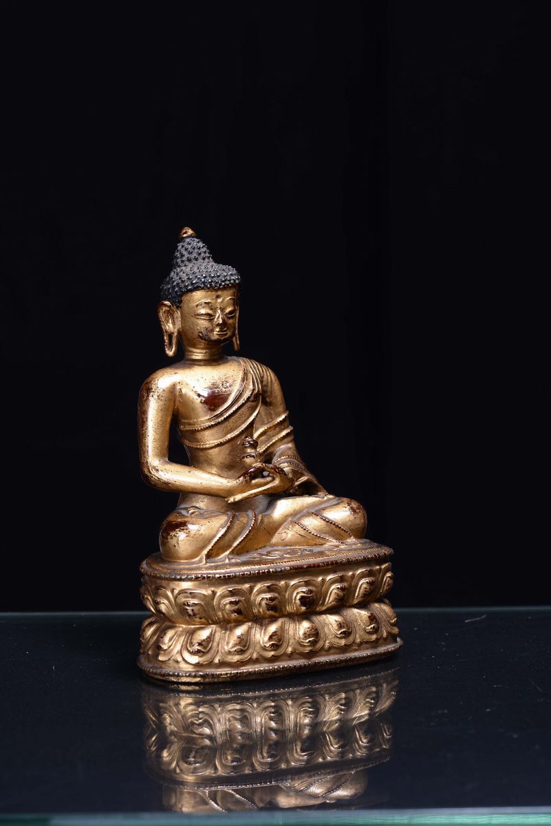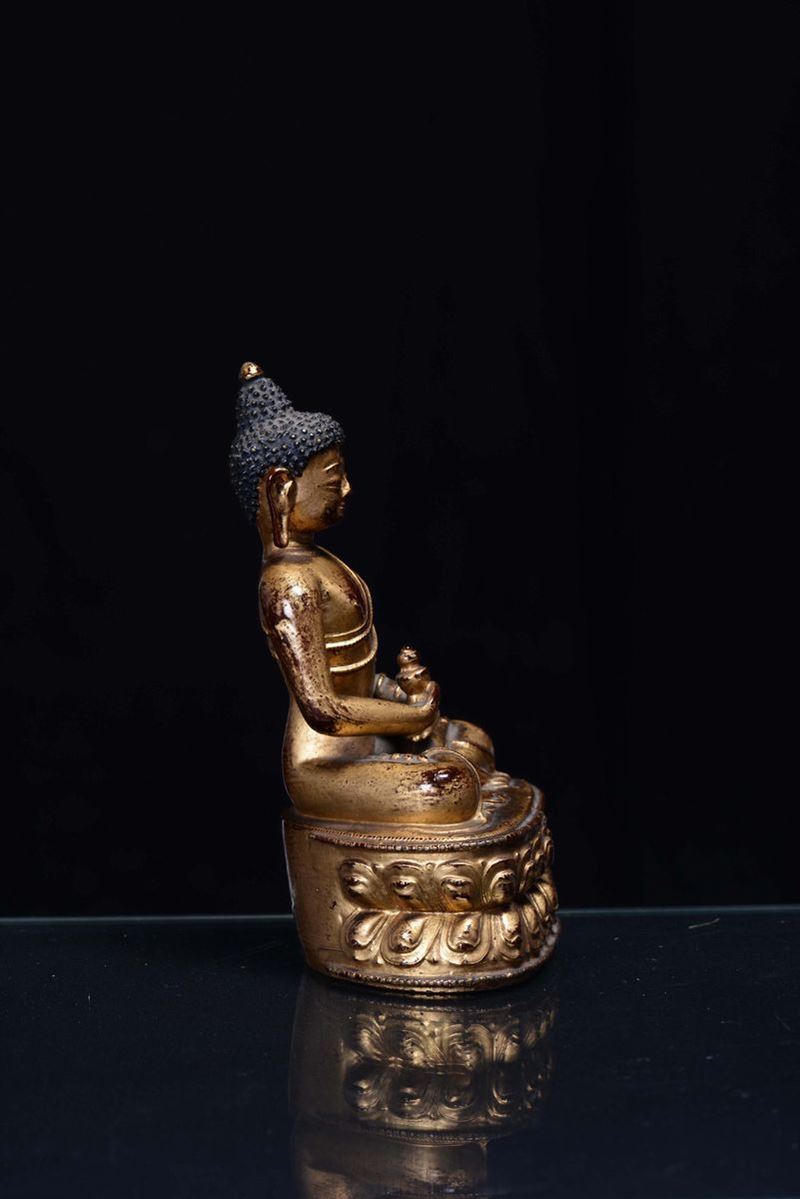 Amitayus in bronzo dorato, Cina, Dinastia Qing, Periodo Kangxi (1662-1722)