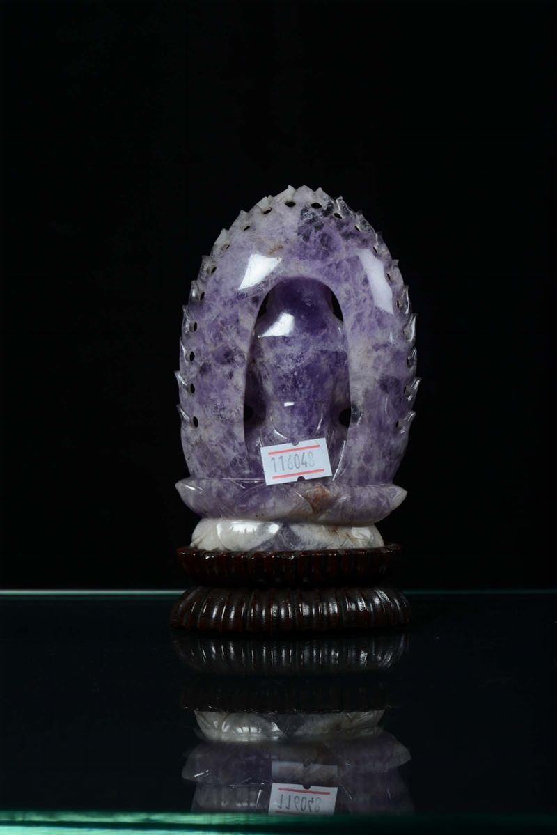 Buddha con aurea in ametista, Cina, Dinastia Qing, XIX secolo