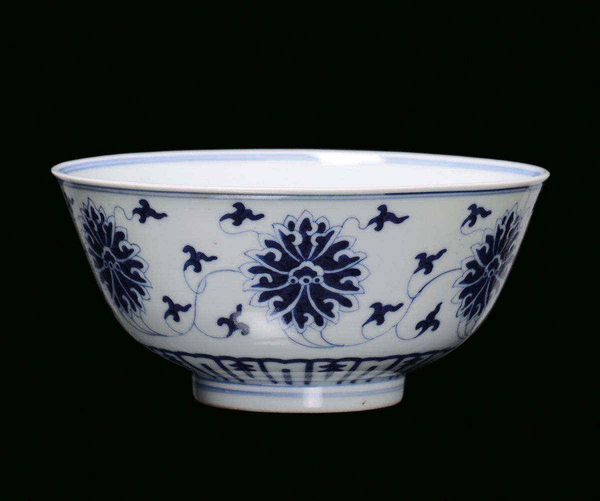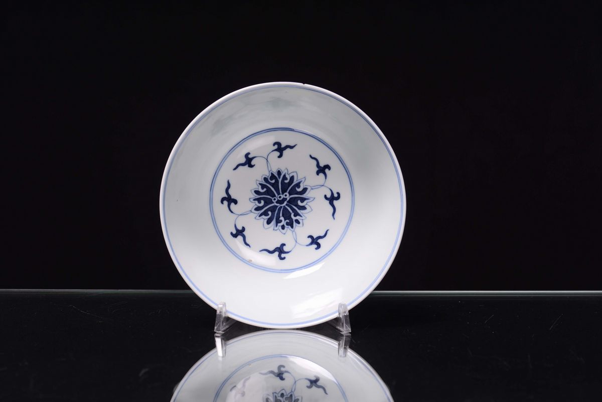 Coppetta in porcellana bianca e blu, Cina XX secolo