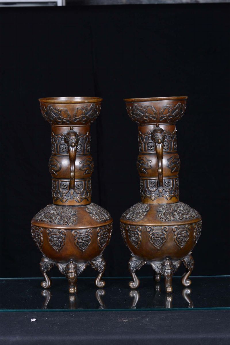Coppia di vasi in bronzo, Giappone, XIX secolo