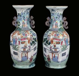 Coppia di vasi in porcellana Famiglia Rosa, Cina, Dinastia Qing, XIX secolo