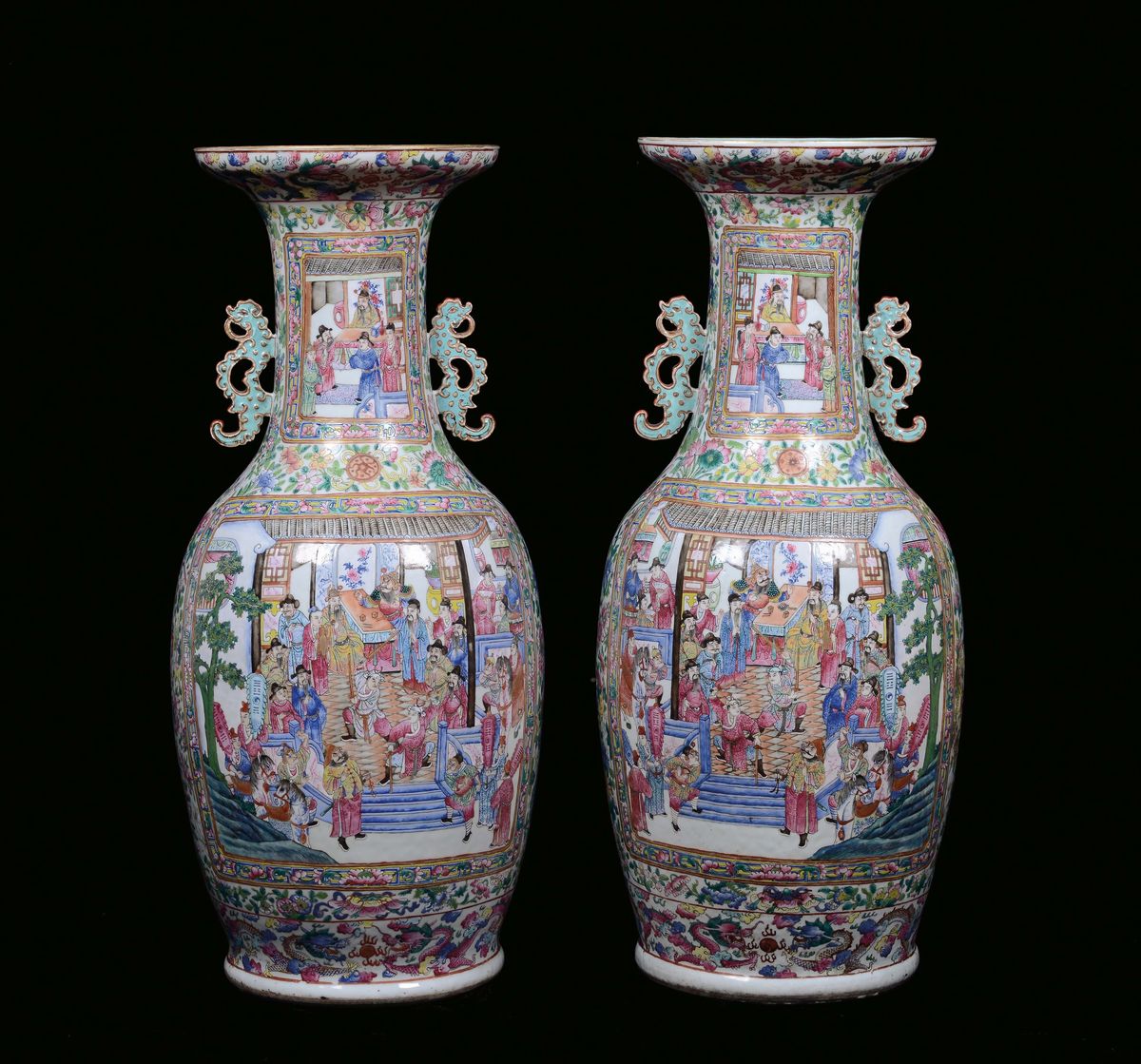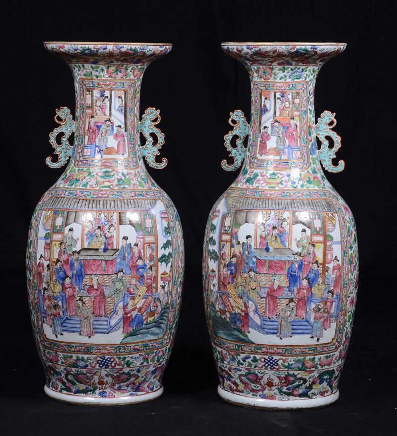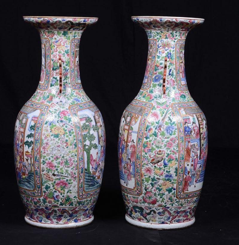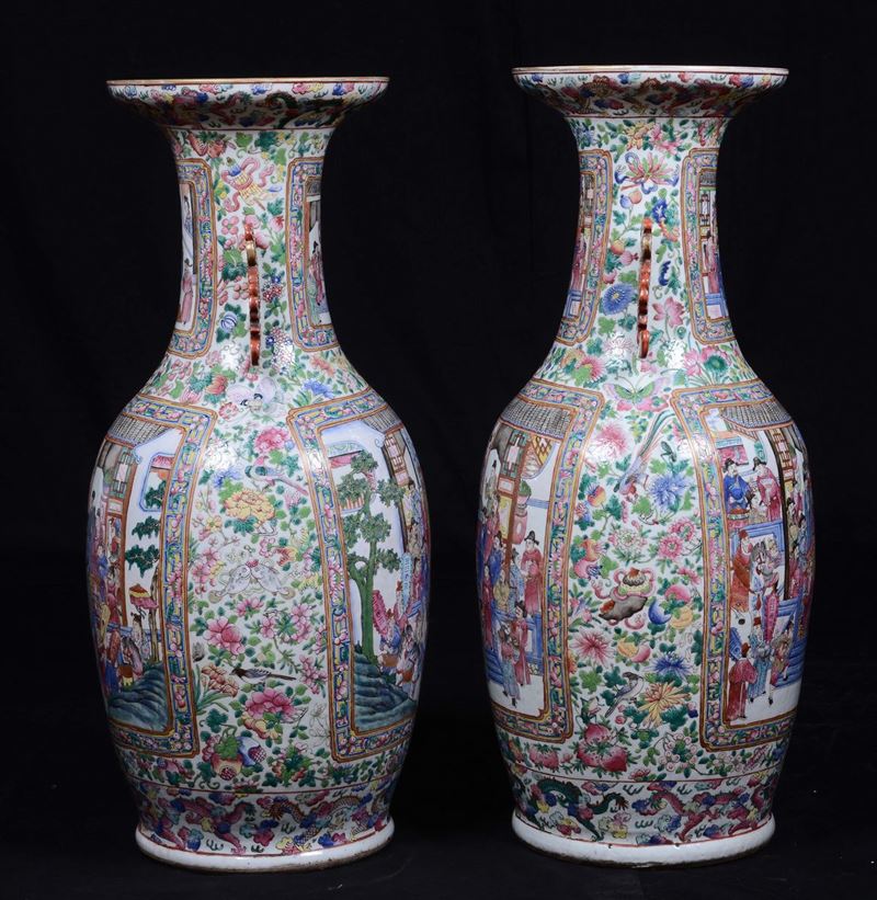 Coppia di vasi in porcellana Famiglia Rosa, Cina, Dinastia Qing,inizio XIX secolo