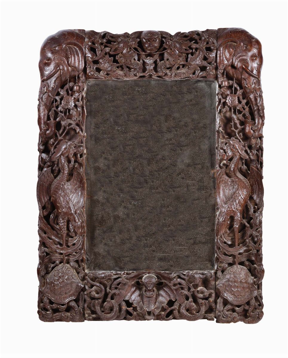 Cornice in legno di Homu intagliato con raffigurazione di elefanti, fenici, tartarughe ed elementi vegetali, Cina, Dinastia [..]
