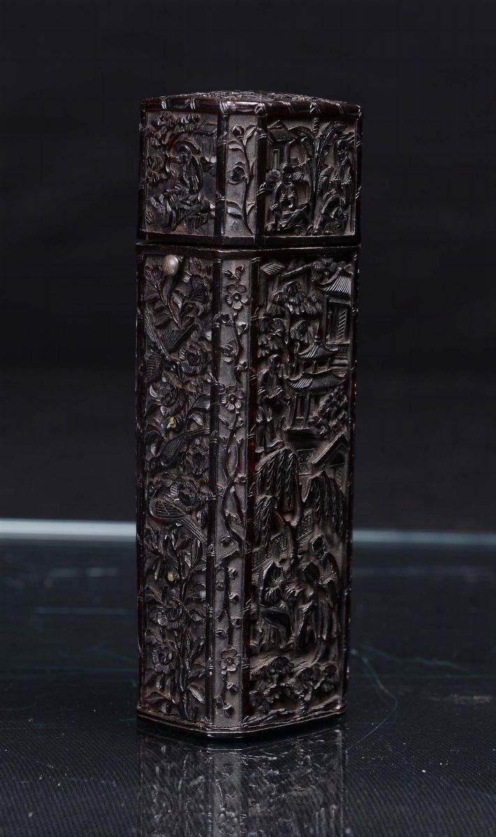 Due scatolette in tartaruga intagliato, Cina, Dinastia Qing, XIX secolo