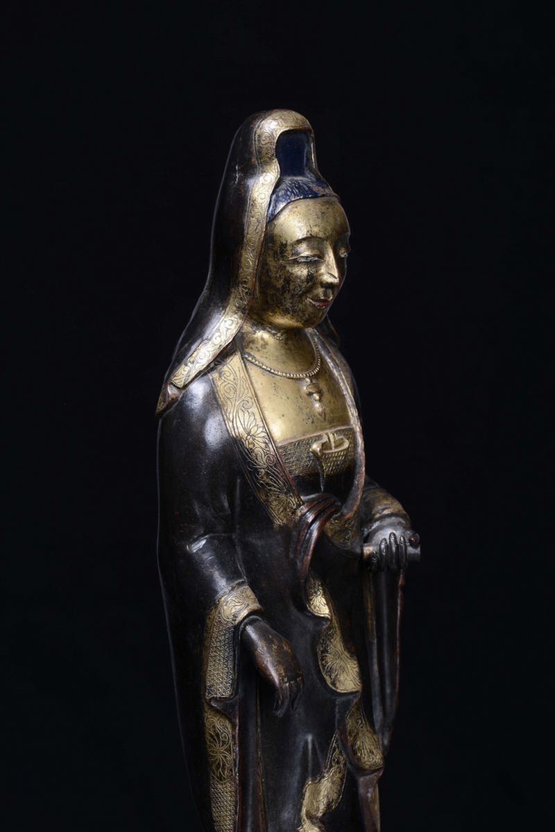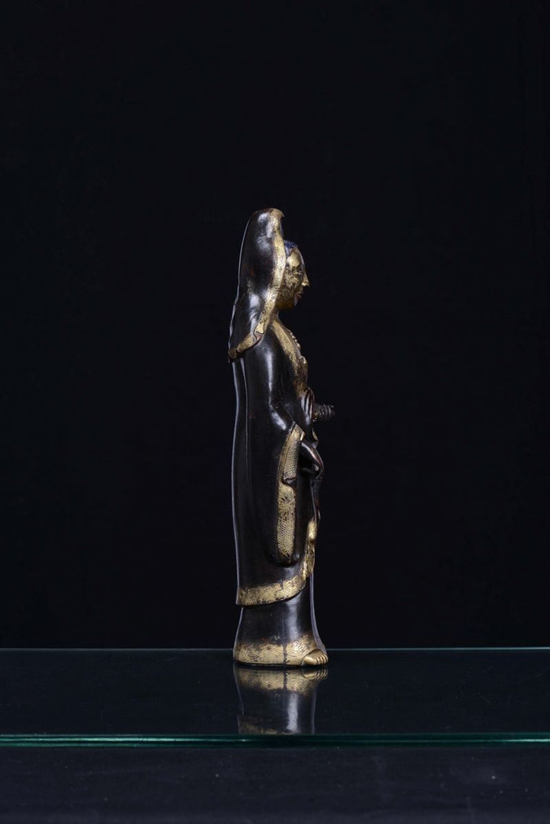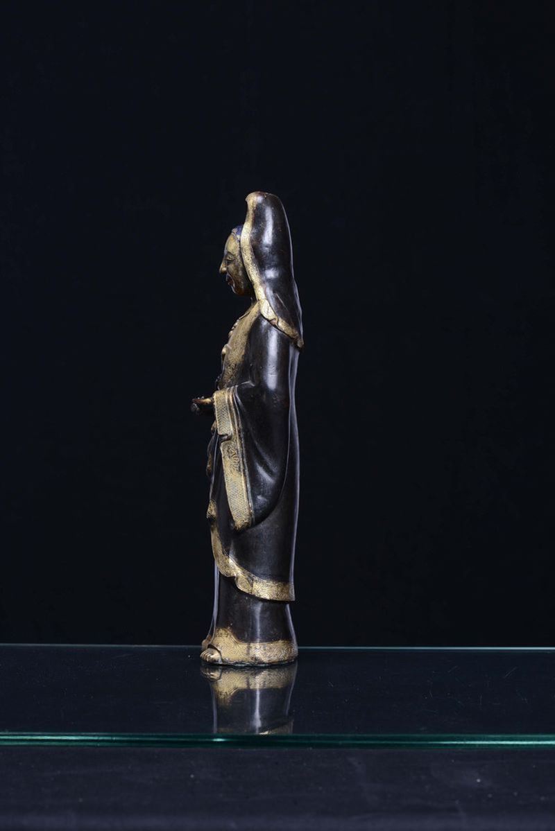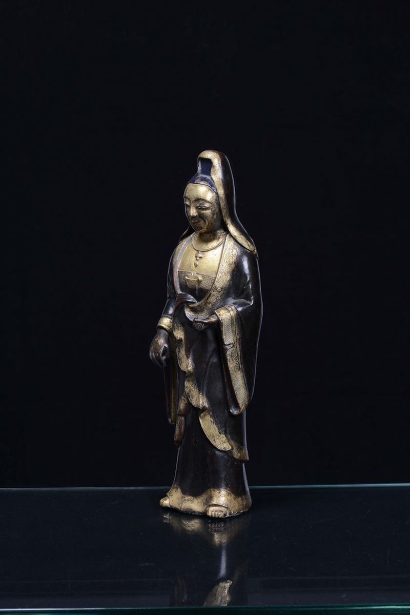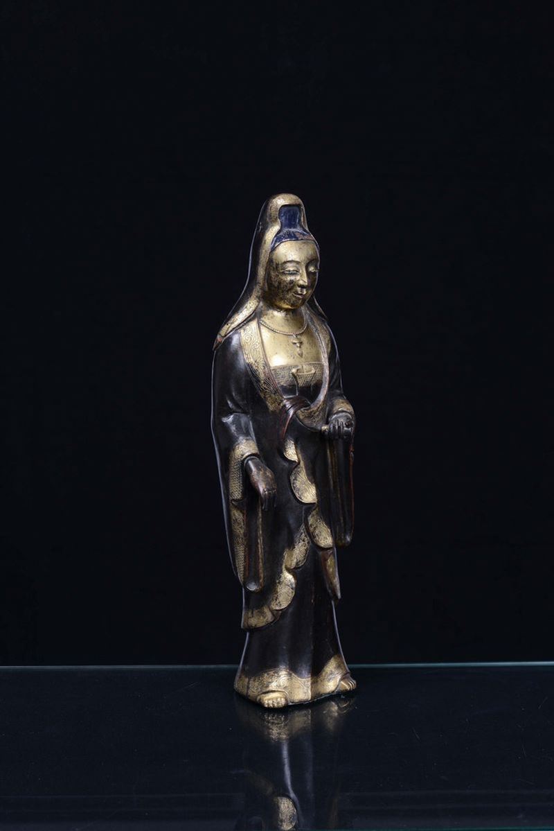 Figura di Guanyin in rame sbalzato e dorato Cina, Dinastia Qing, XIX secolo