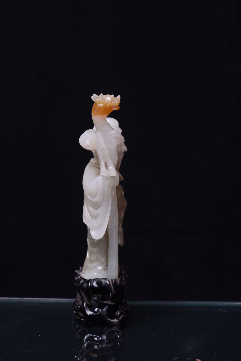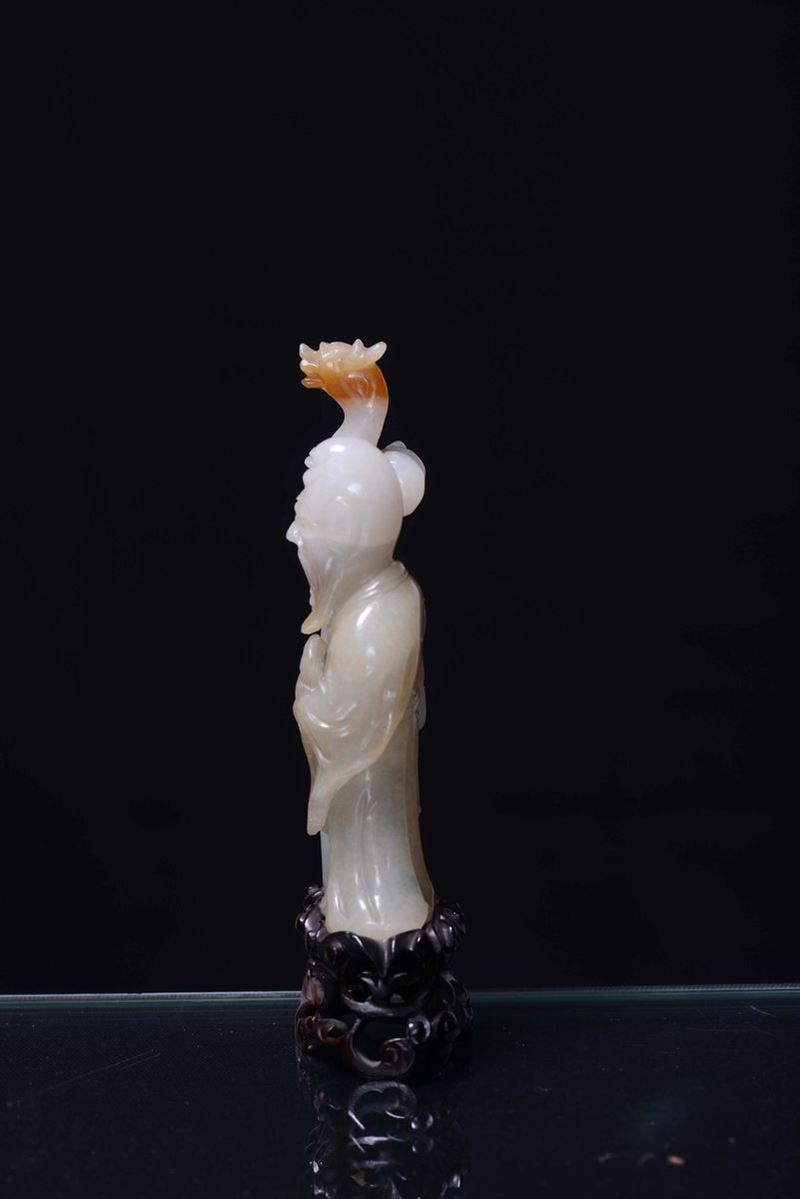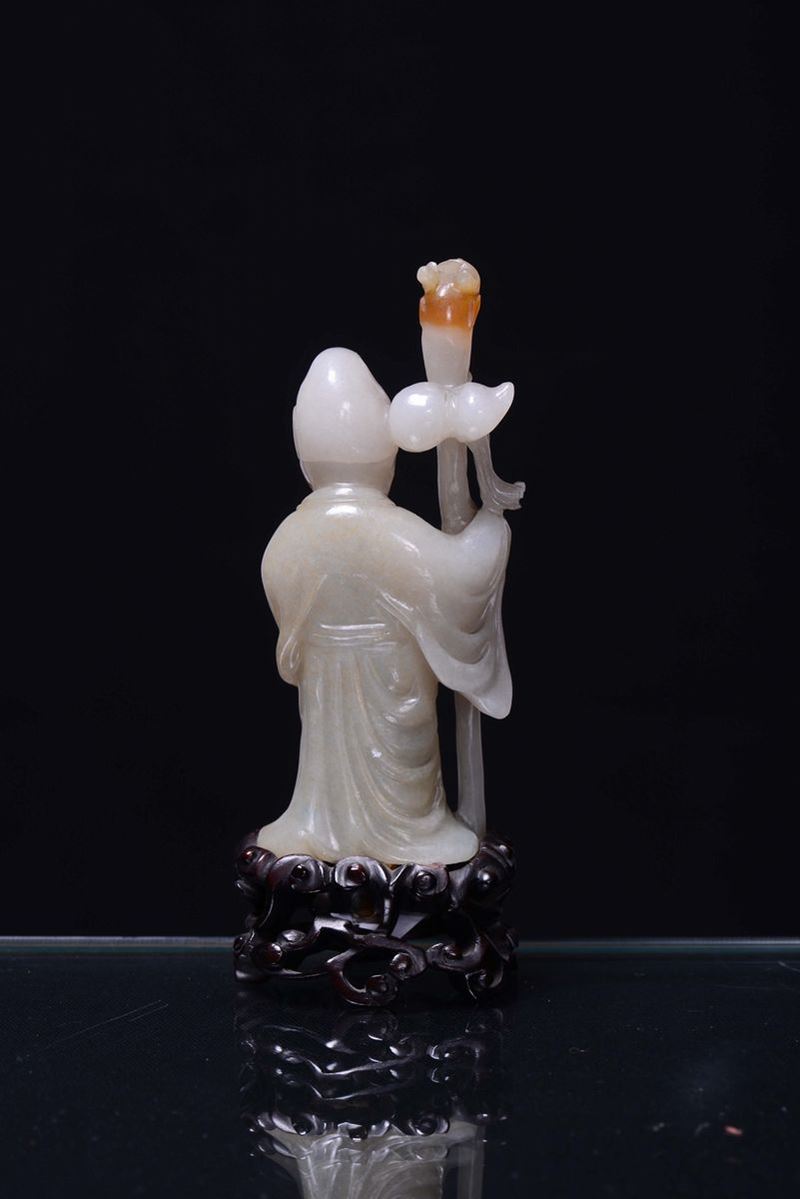 Figura di saggio con bastone in giada bianca e russet, Cina, Dinastia Qing, XIX secolo