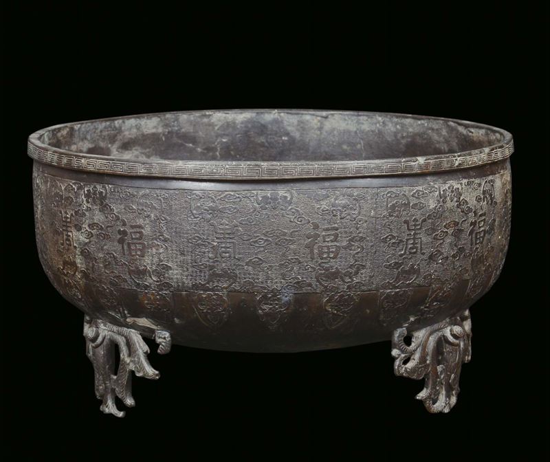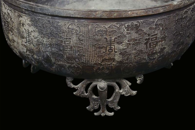 Grande bacile in bronzo con ideogrammi, Cina, Dinastia Ming, XVII secolo