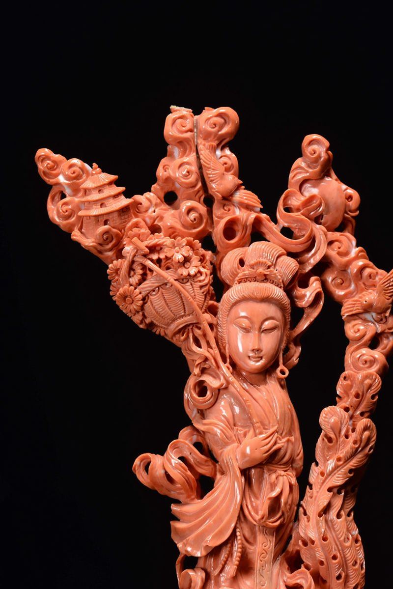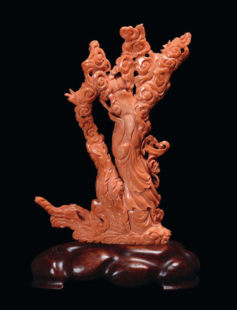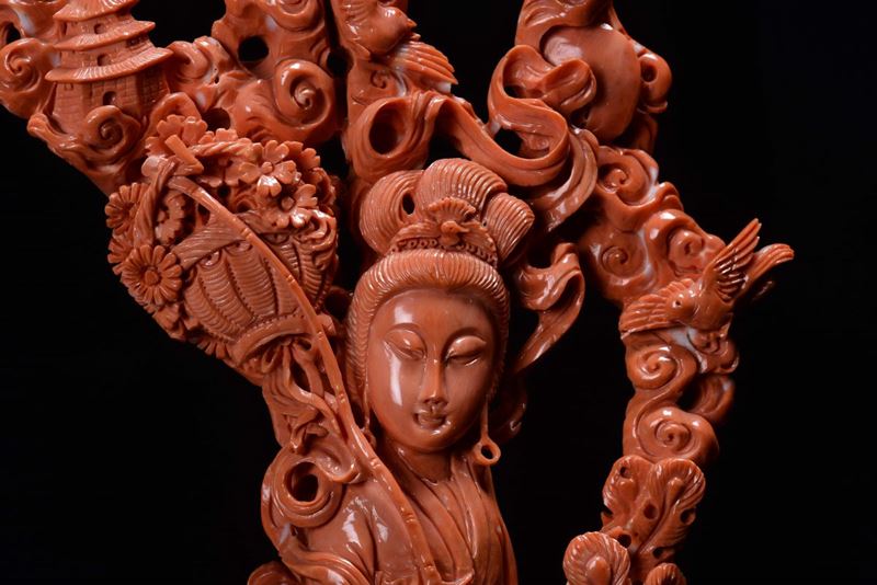 Gruppo in corallo raffigurante Guanyin, Cina, Dinastia Qing, XIX Secolo