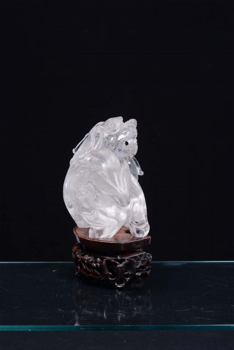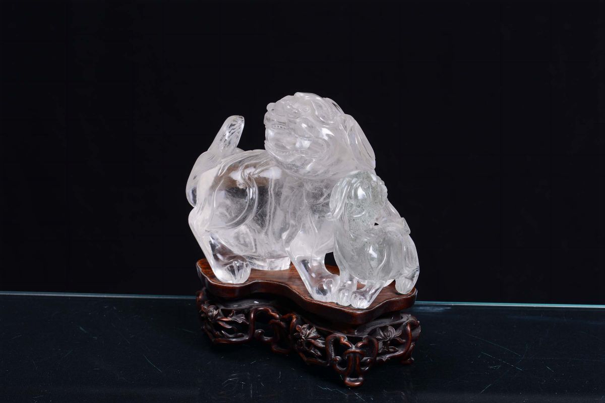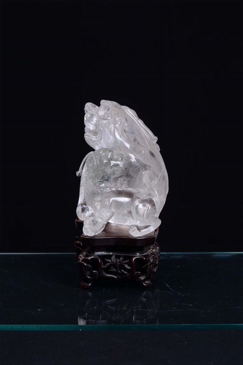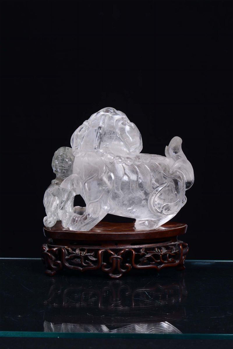 Gruppo in cristallo di rocca raffigurante cani di Pho con cucciolo, Cina, Dinastia Qing, XIX secolo