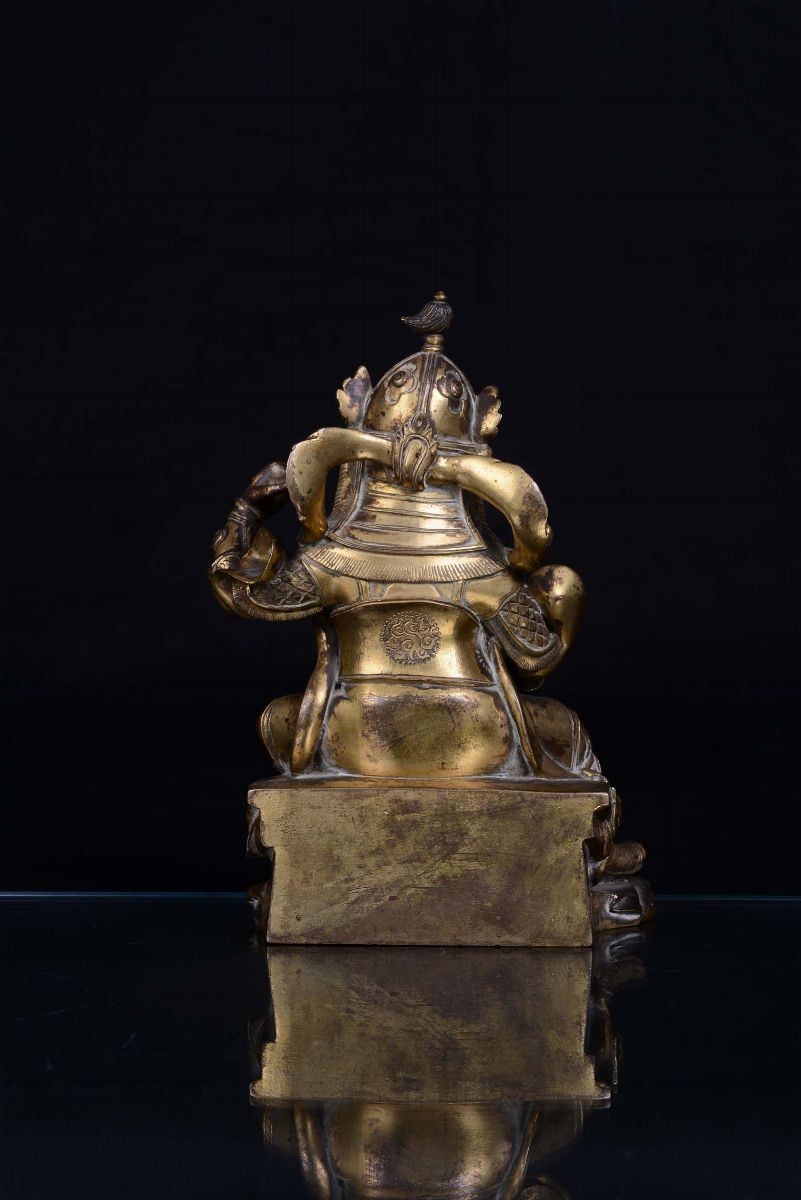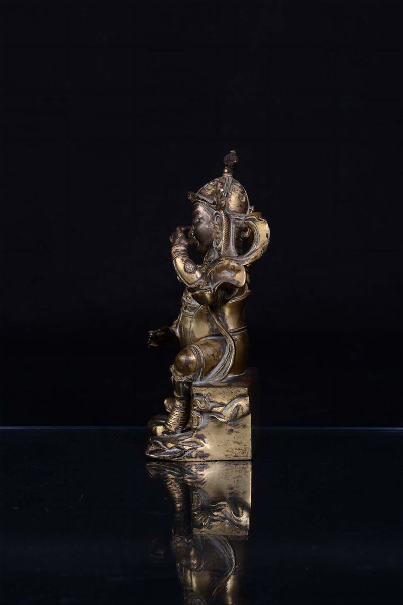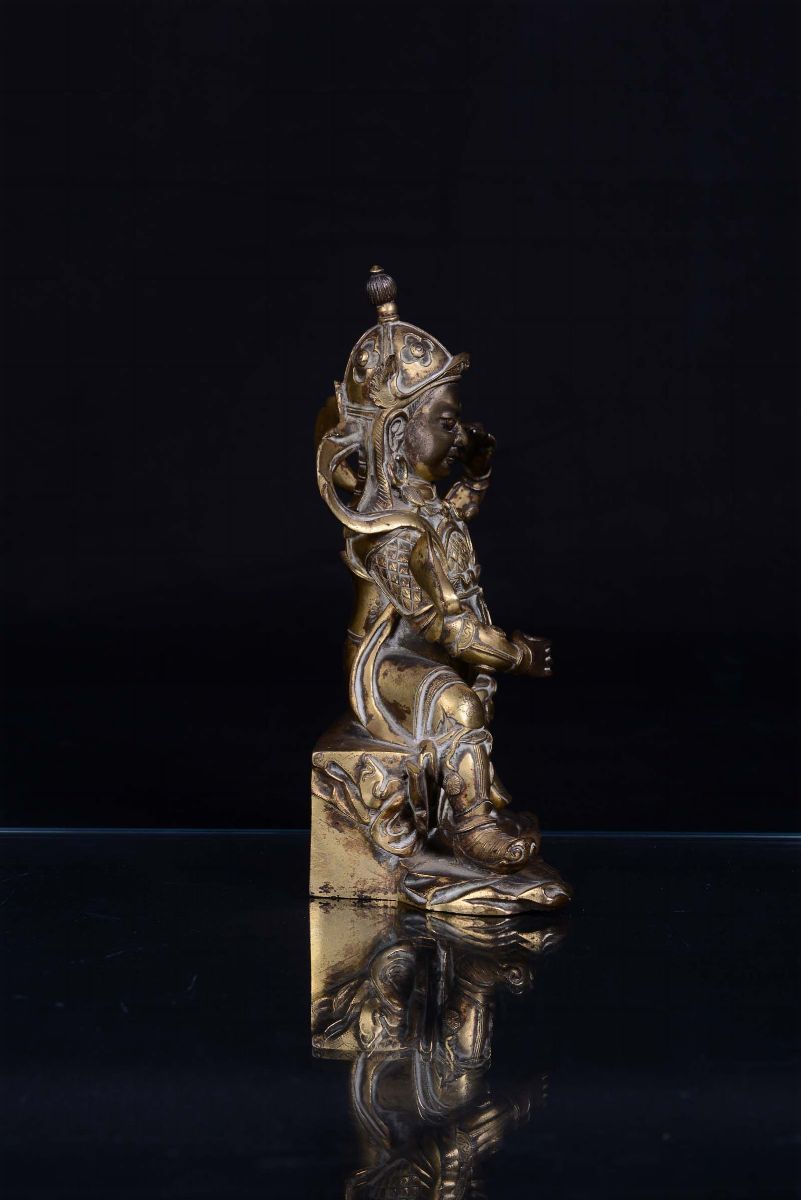 Guardiano in bronzo dorato seduto su trono, Cina, Dinastia Qing, XVIII secolo