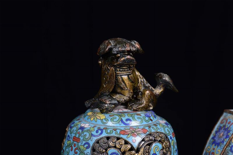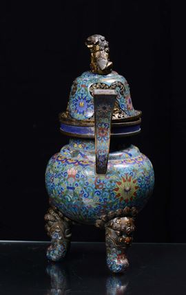 Incensiere in bronzo dorato e smalti cloisonné, Cina, Dinastia Qing, XIX secolo