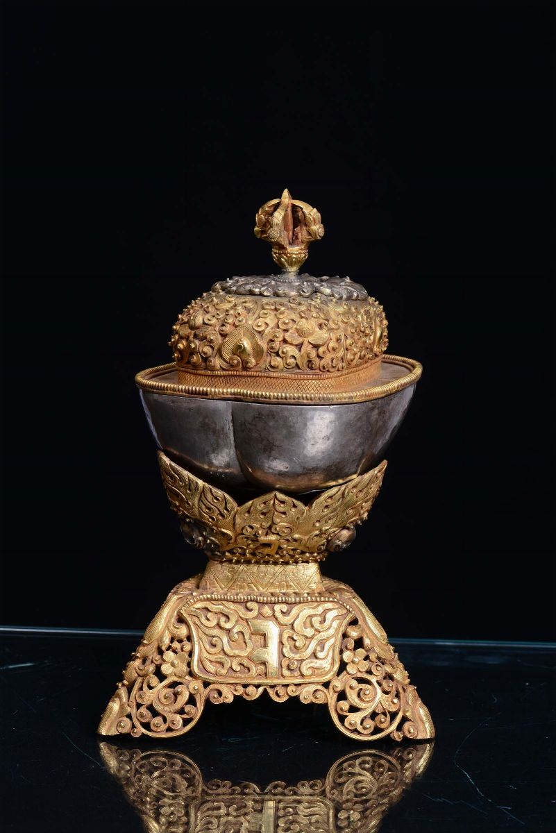 Kapala in argento e rame dorato, Tibet, XVIII secolo