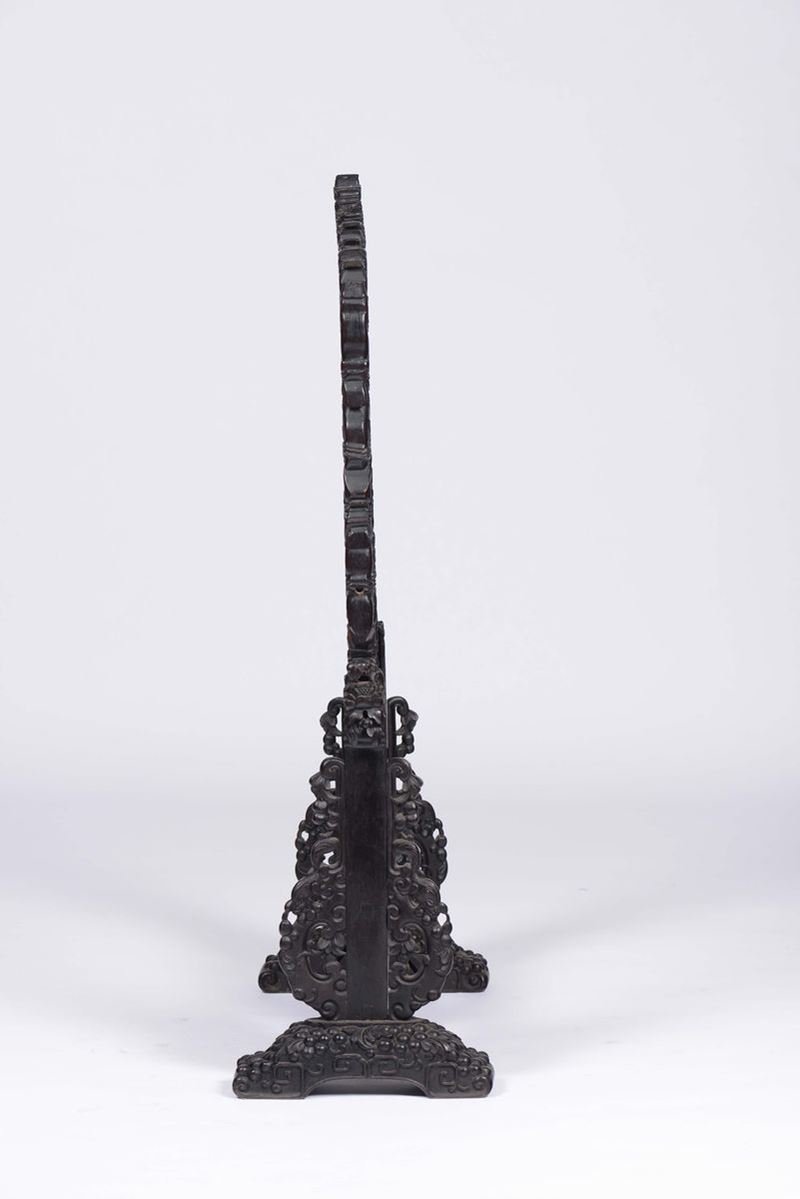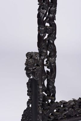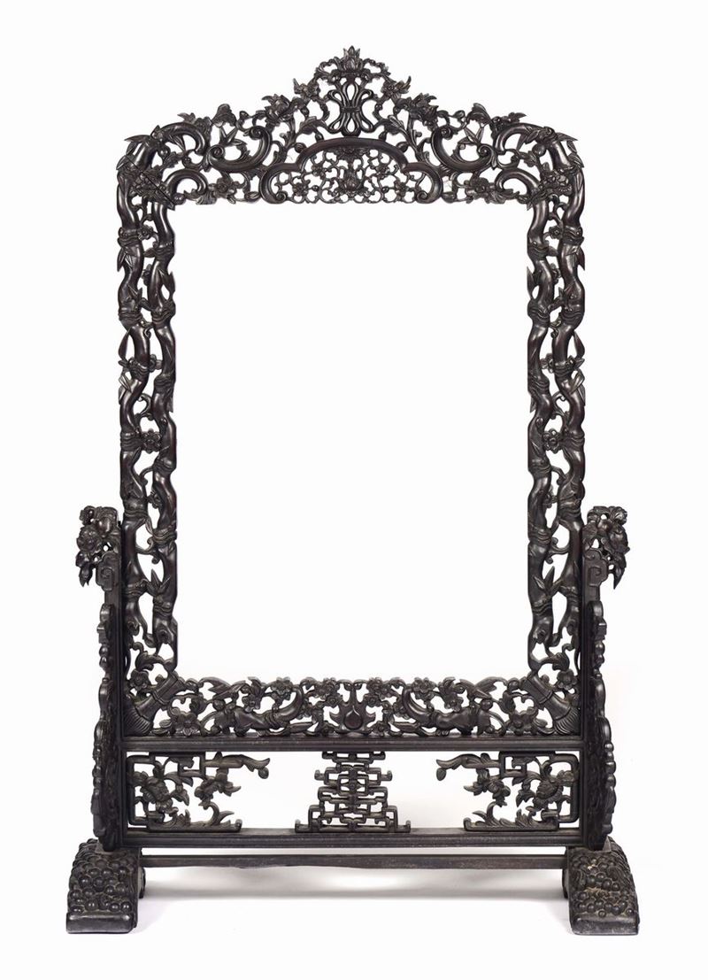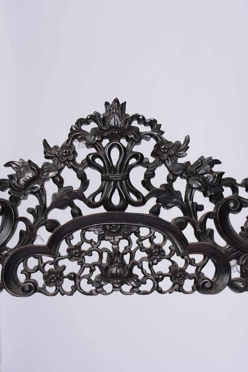Parafuoco in legno di Homu riccamente intagliato, Cina, Dinastia Qing, XIX secolo