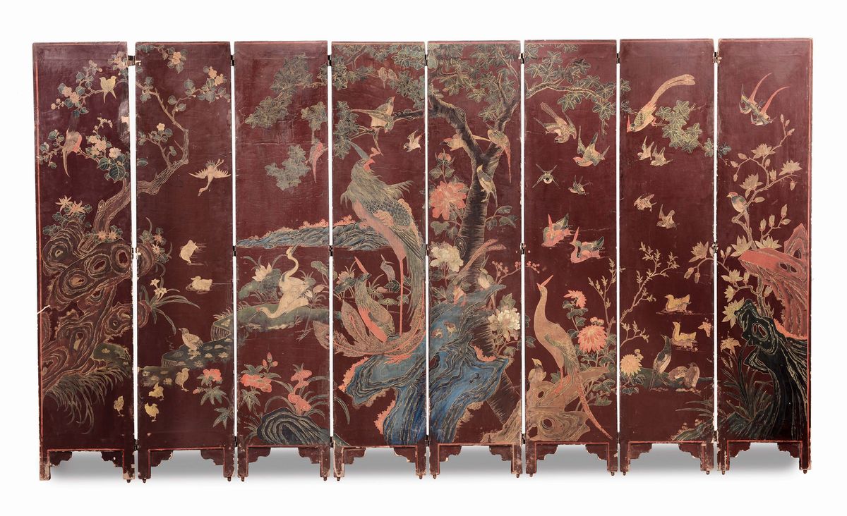 Paravento in Coromandel con figure e paesaggi, Cina, Dinastia Qing, XIX secolo