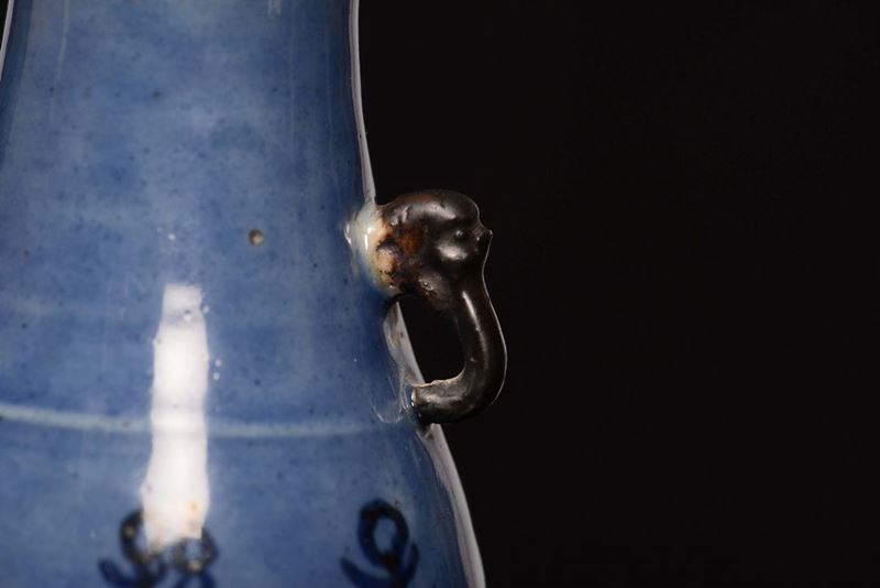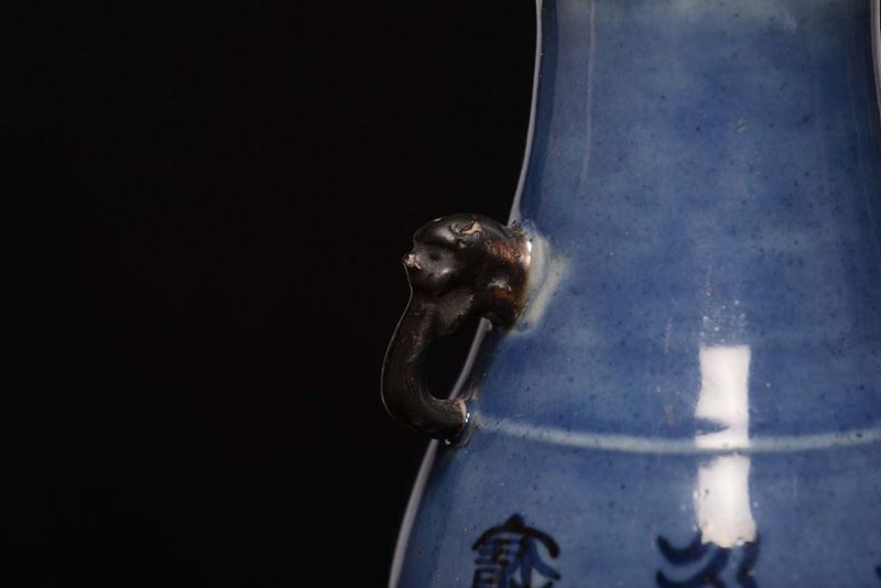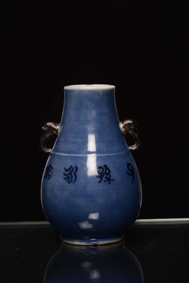 Piccolo vaso in porcellana blu con ideogrammi, Cina, Dinastia Qing, XIX secolo