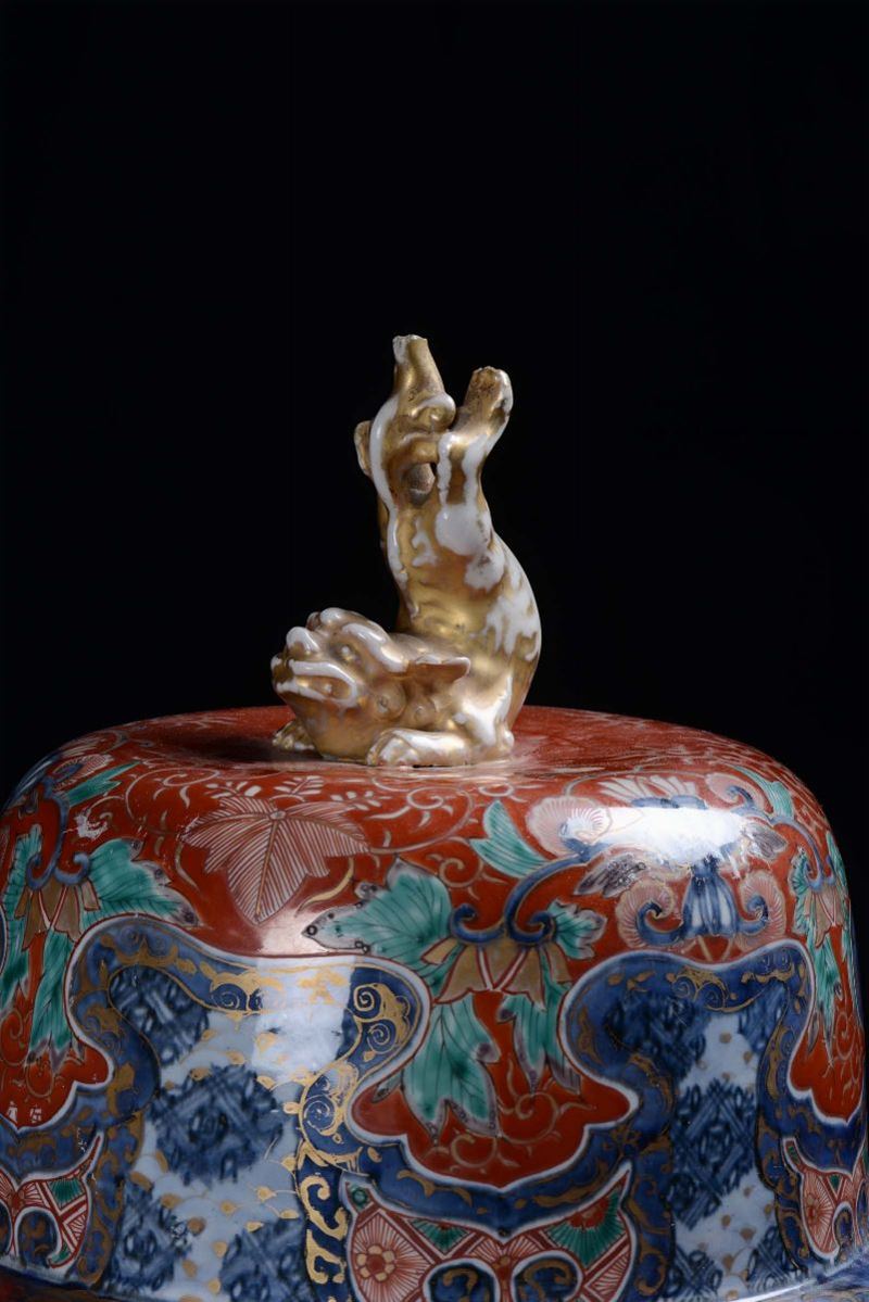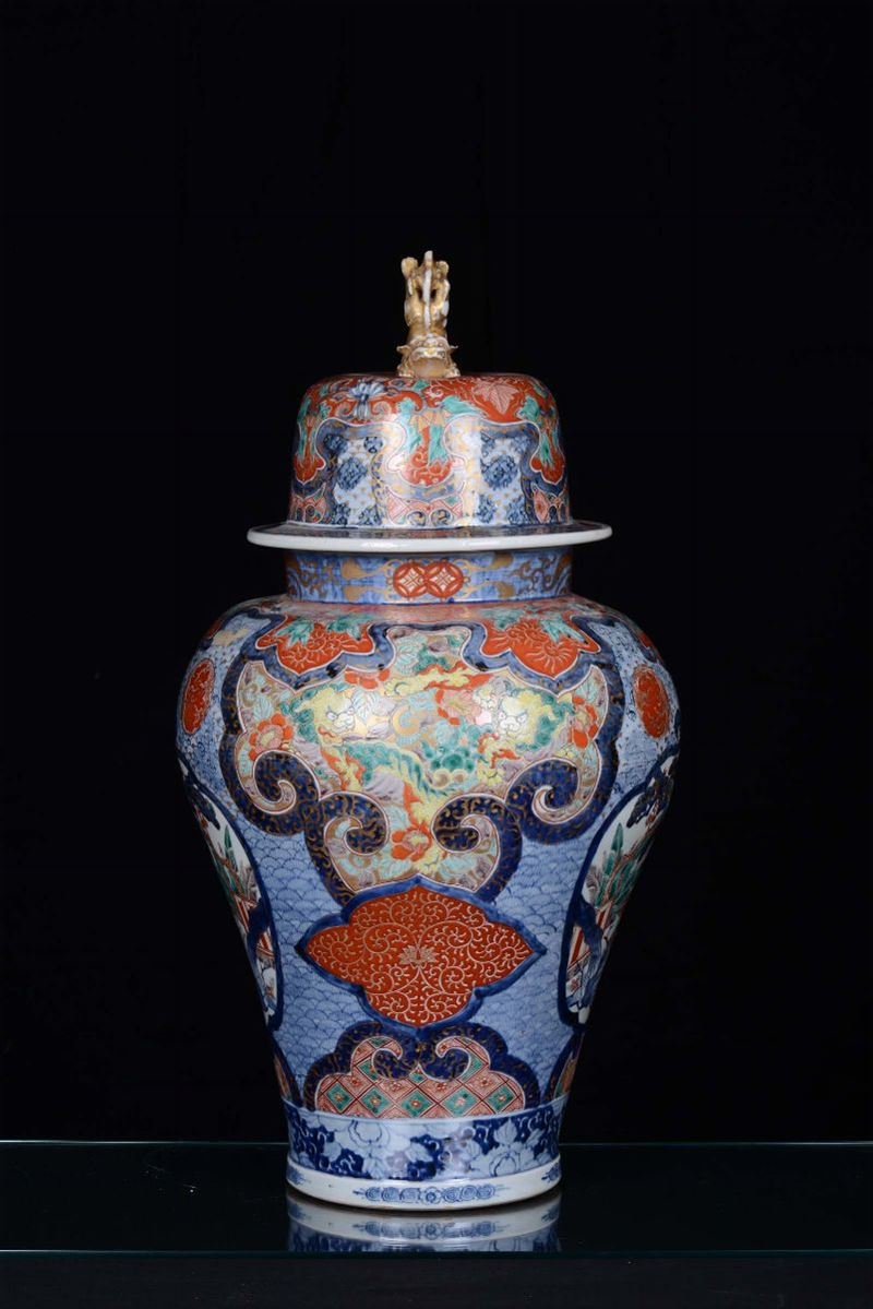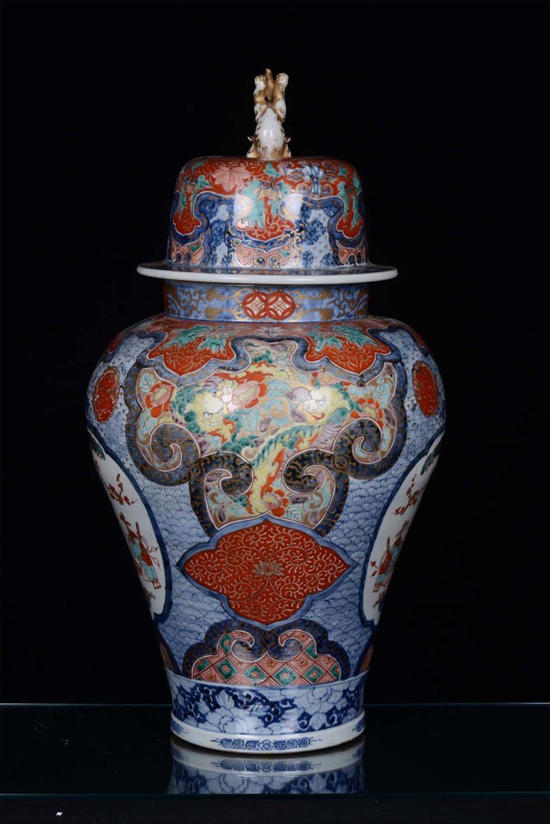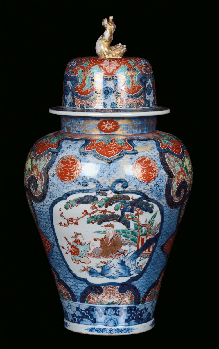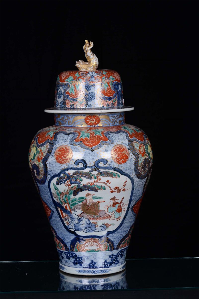Potiche in ceramica dipinta con personaggi e draghi, Giappone XIX secolo