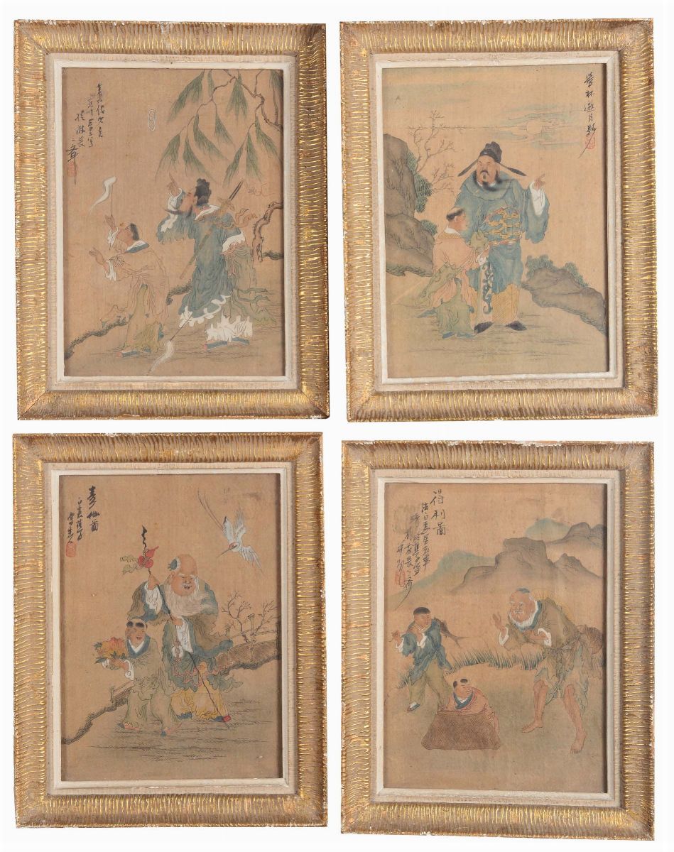 Quattro piccoli dipinti su seta raffiguranti personaggi, Cina, Dinastia Qing, XIX secolo