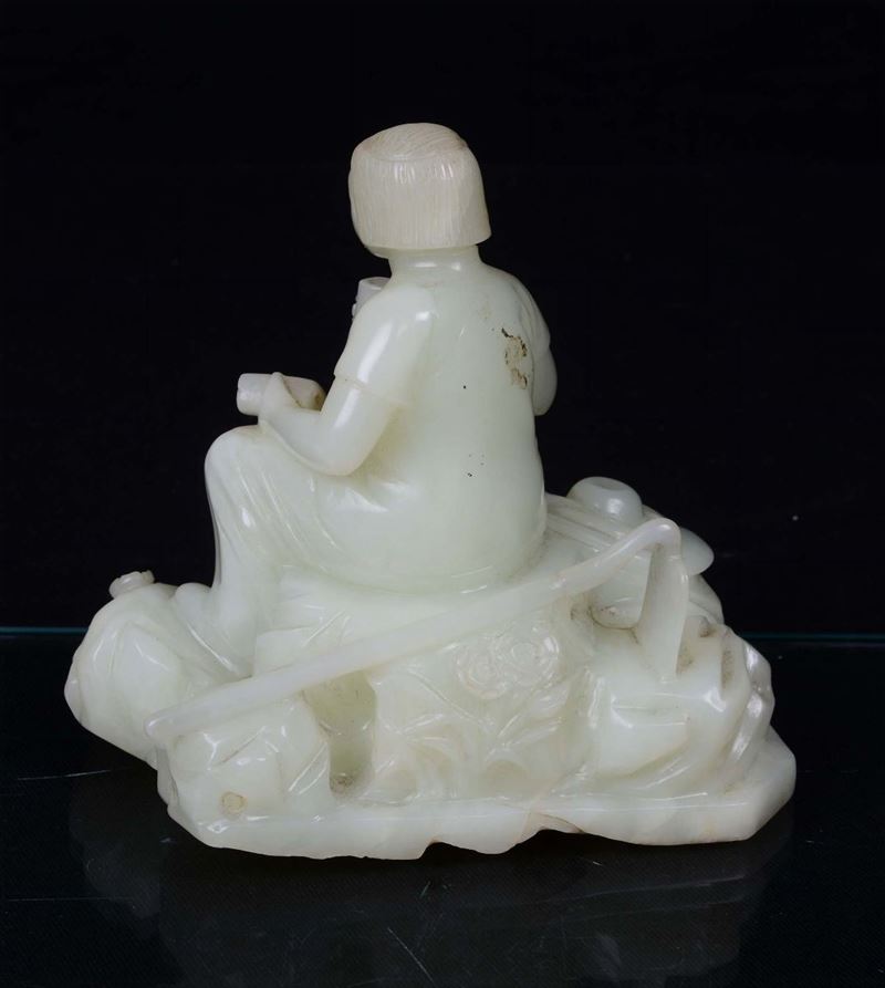 Scultura in giada bianca raffigurante fanciullo seduto, Cina, Repubblica, XX secolo