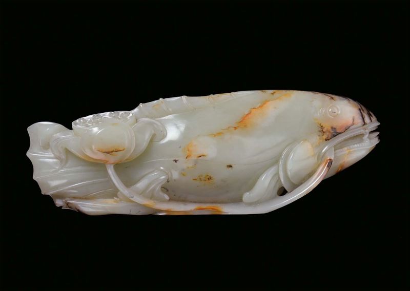 Scultura in giada gialla raffigurante Pesce, Cina, Dinastia Qing, XVIII secolo