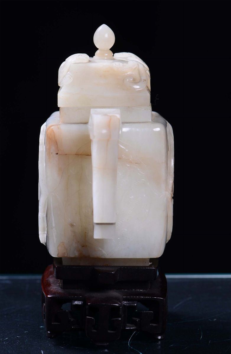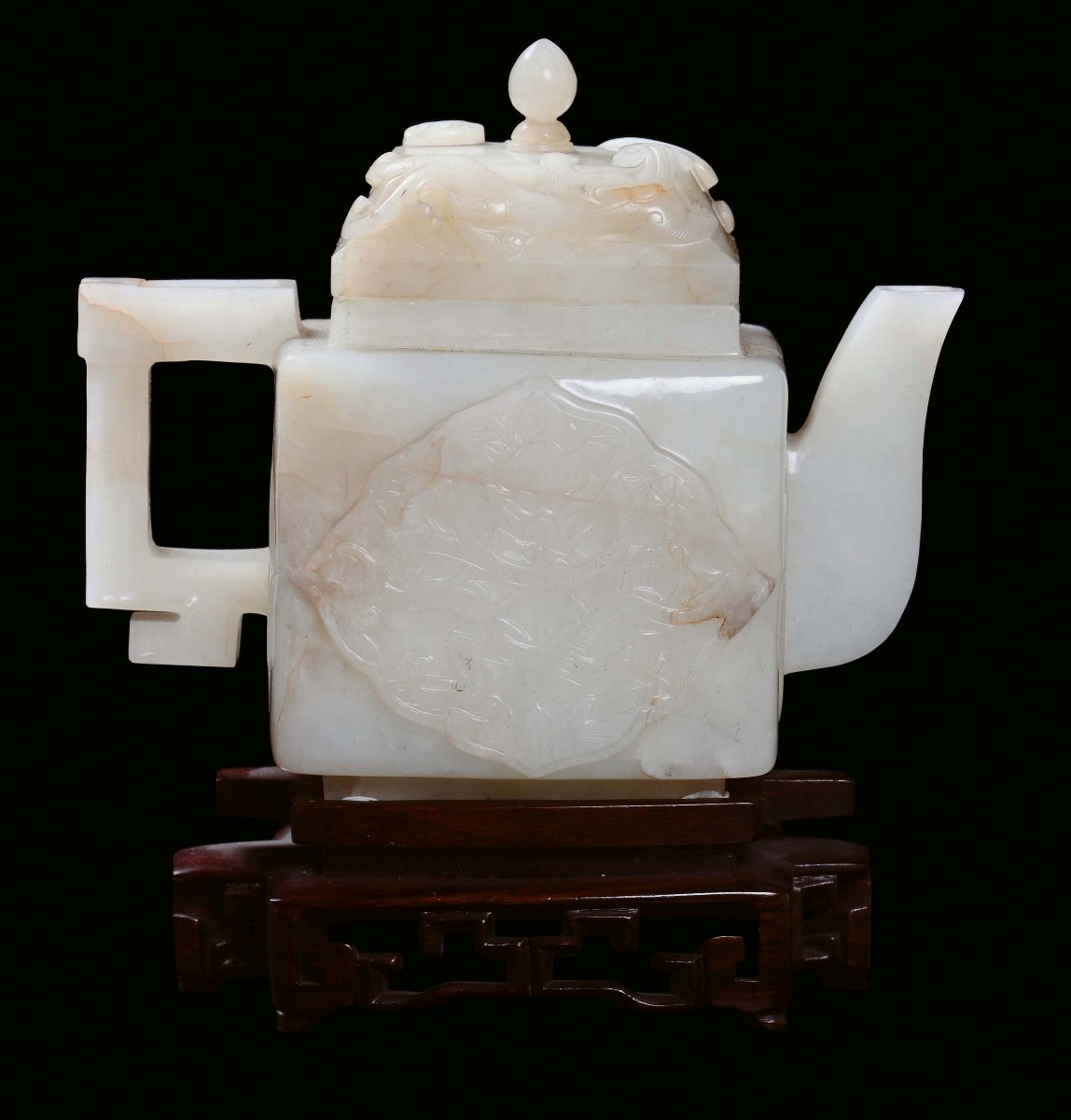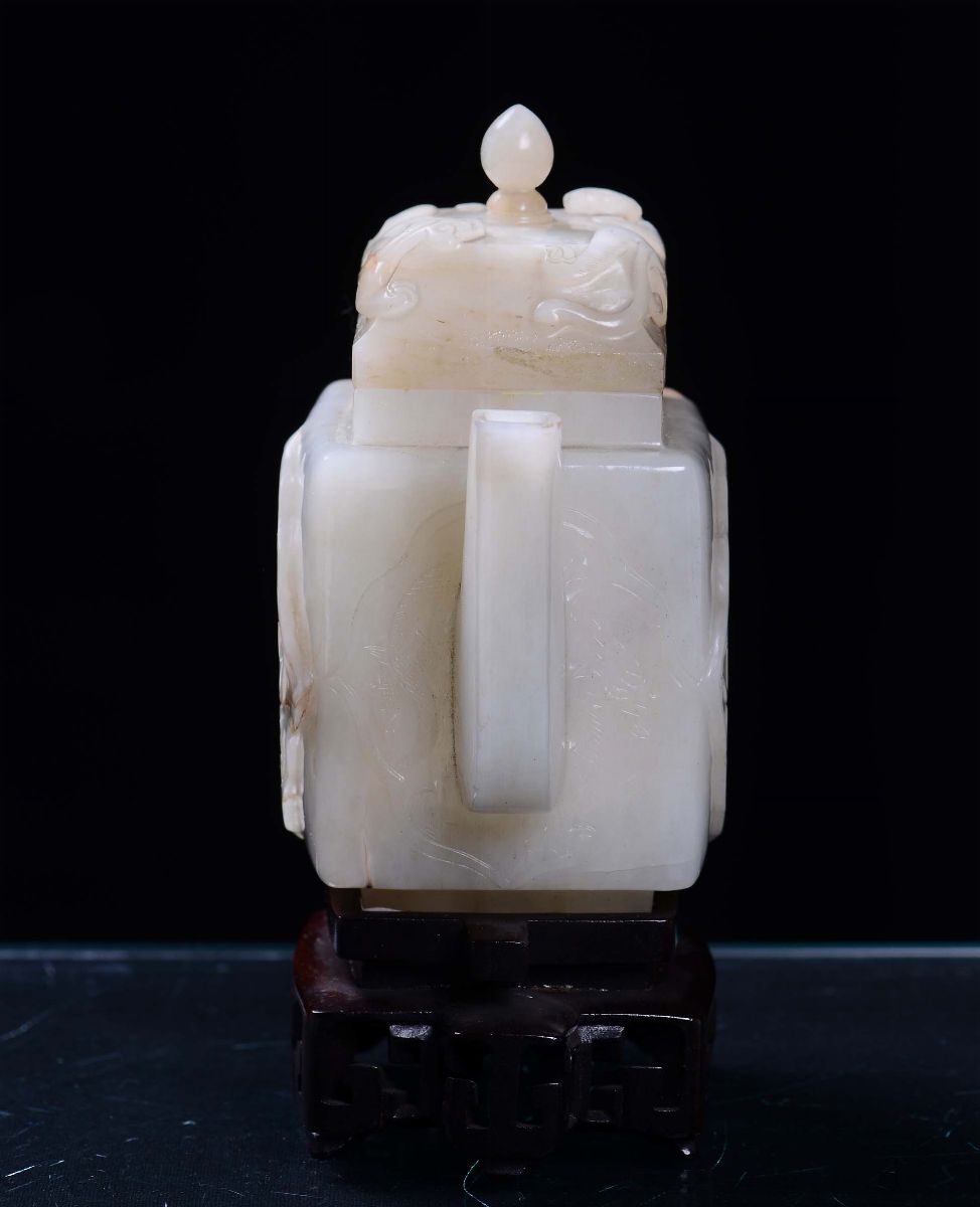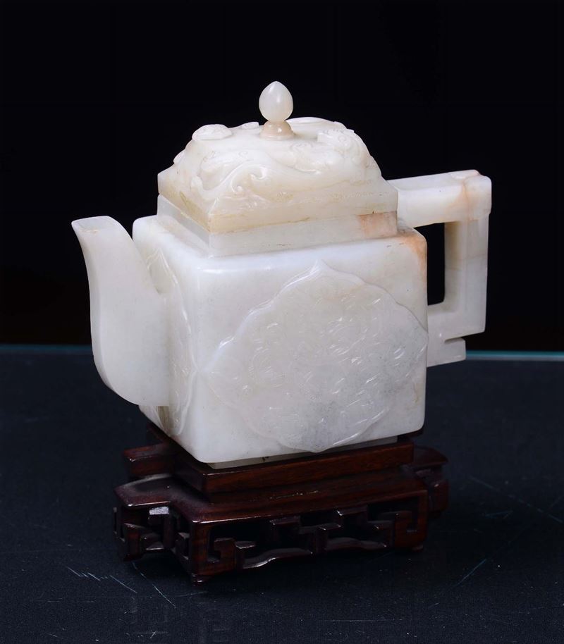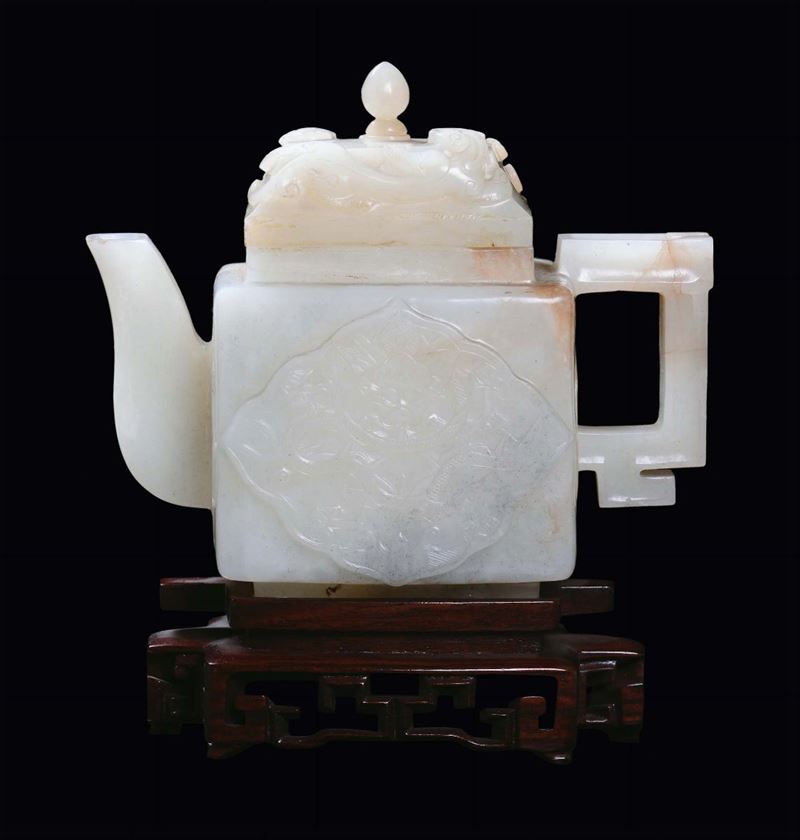 Teiera con coperchio in giada bianca e russet, Cina, Dinastia Qing, Periodo Qianlong (1736-1795)