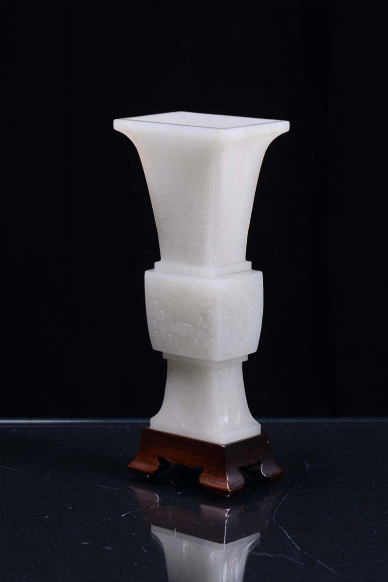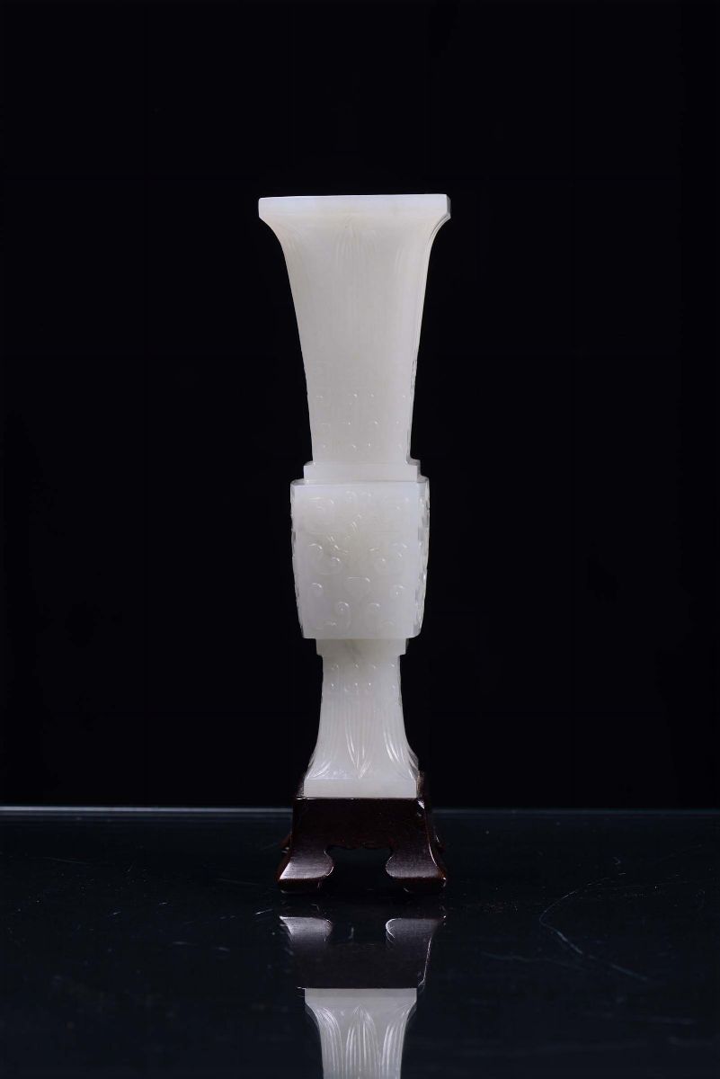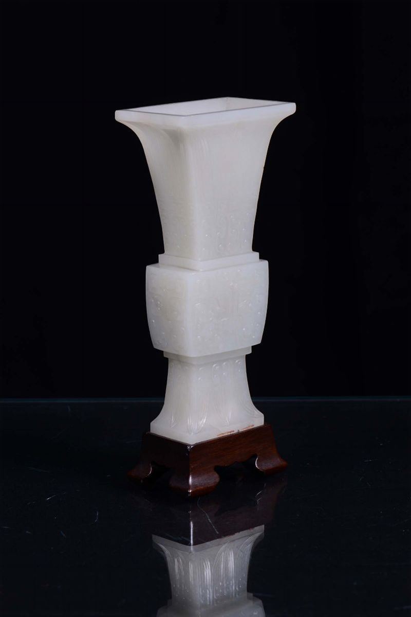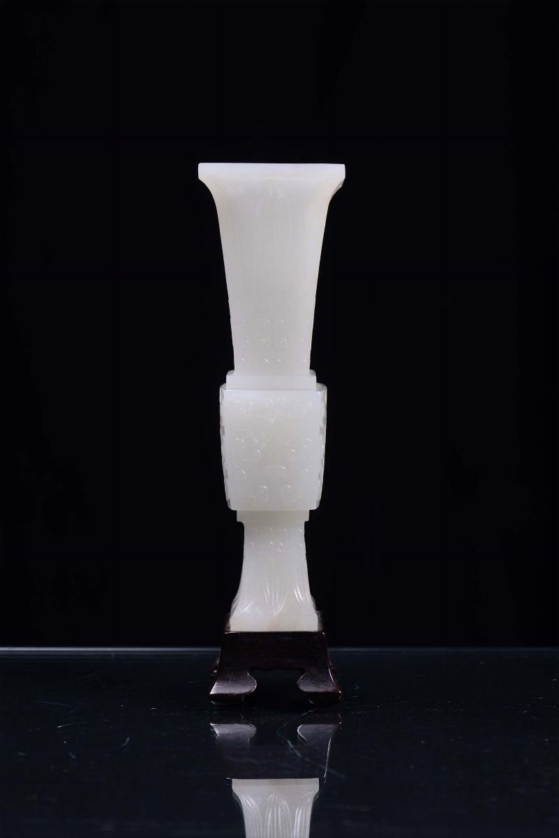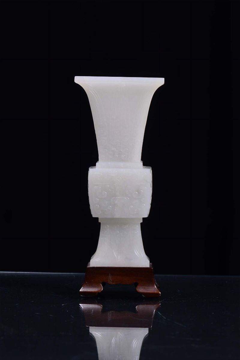 Vasetto in giada bianca finemente scolpito modello arcaico, Cina, Dinastia Qing, XVIII secolo