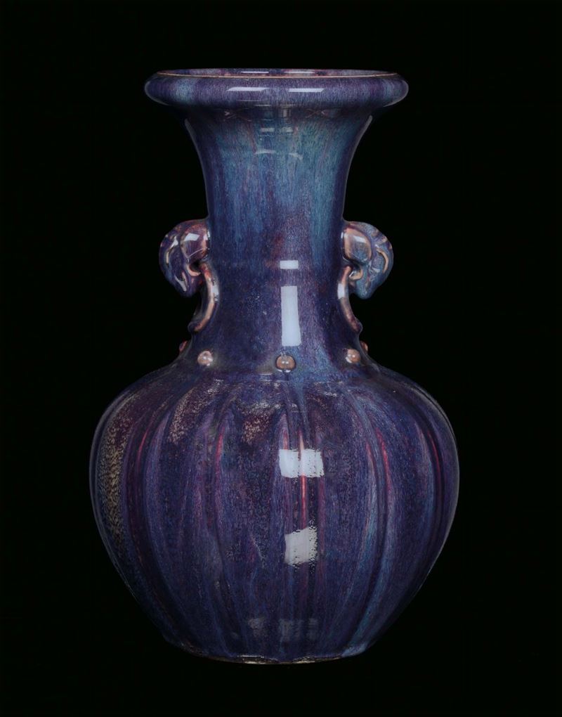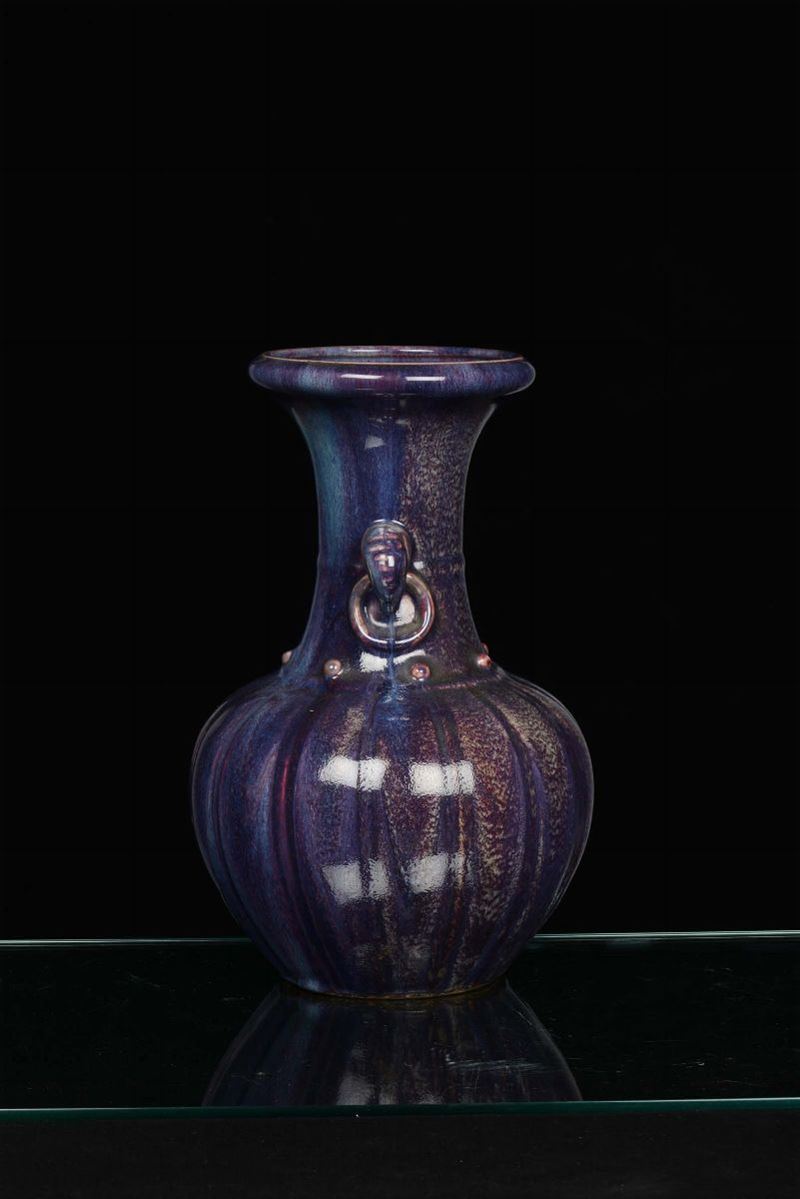 Vaso in ceramica flambè a forma di zucca, Cina, Dinastia Qing, XIX secolo