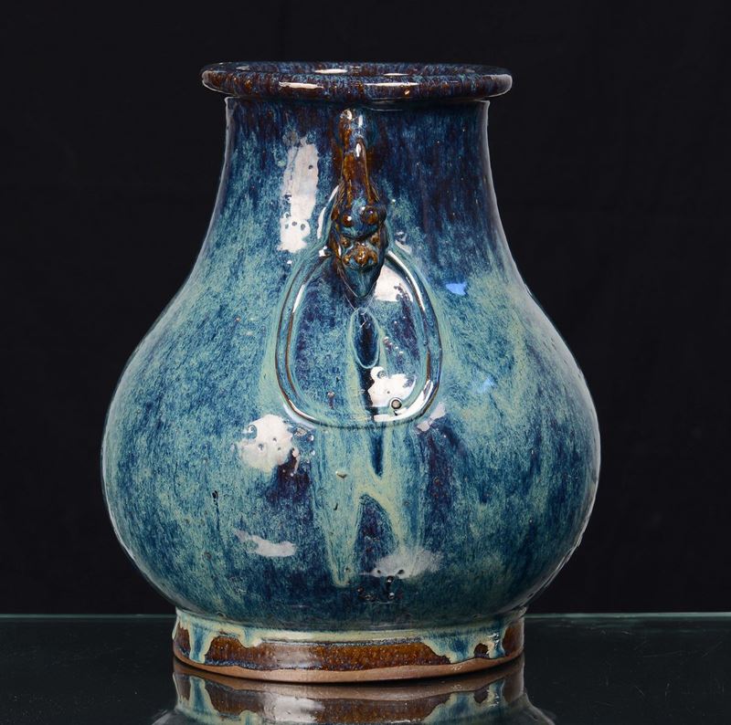Vaso in gres flambé sulla tonalità del blu, Cina, Dinastia Qing, XIX secolo