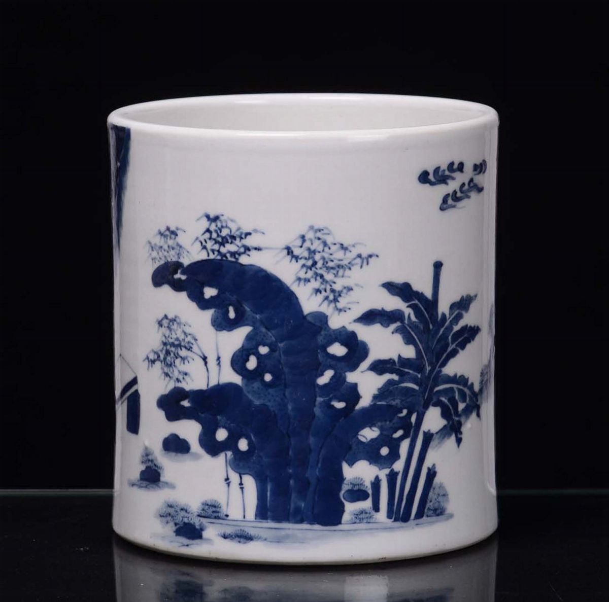 Vaso portapennelli in porcellana bianca e blu, Cina XX secolo
