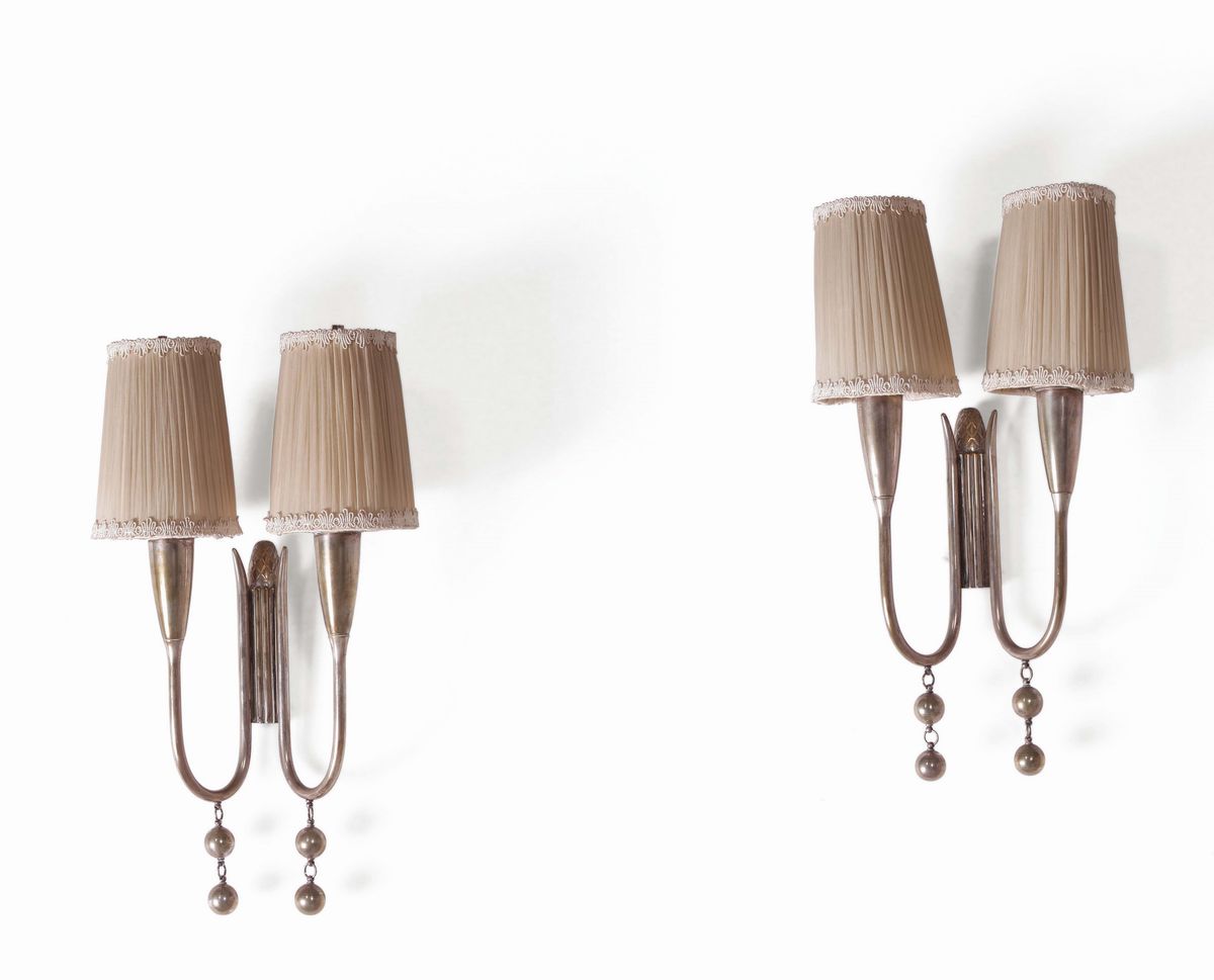 con paralumi in stoffa nello stile di Pietro Chiesa. Prod. Italia, 1950 ca. cm 38x19