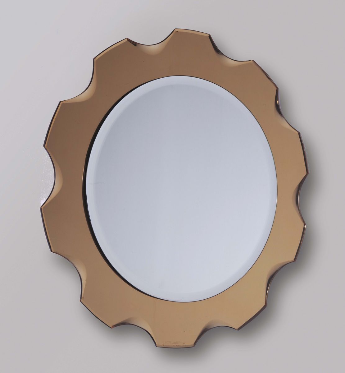 Specchiera in vetro molato con cornice in vetro color bronzo. Prod. Cristal Art, Italia, 1965 ca. cm 70