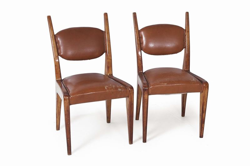 Scrivania in acero con piano in formica e due sedie in legno di faggio. Prod. Italia, 1952 cm Scrivania: 78x125x100 Sedie: 85x46x46