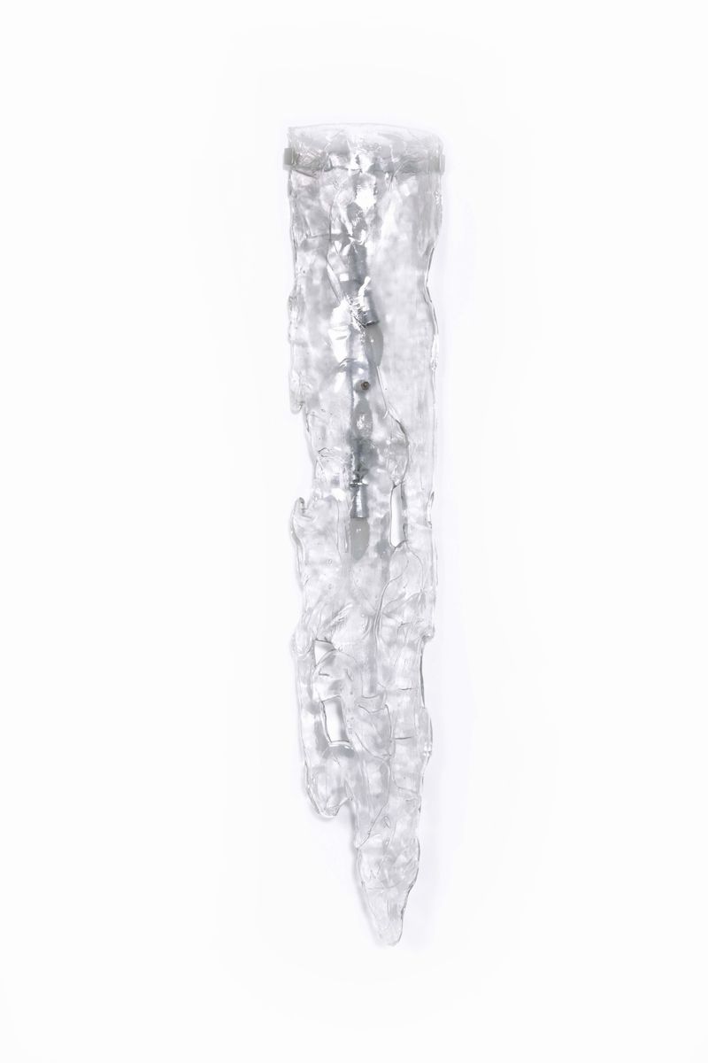 Due lampade da parete in vetro di Murano trasparente. Supporto in metallo verniciato. Prod. Salviati, Italia, 1970 ca. cm 26x130; 26x98