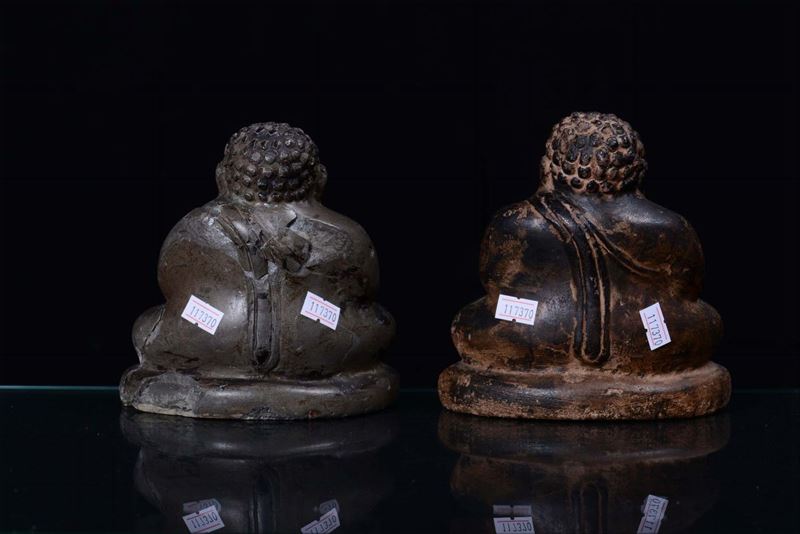 Coppia Buddha in pietra lavica
