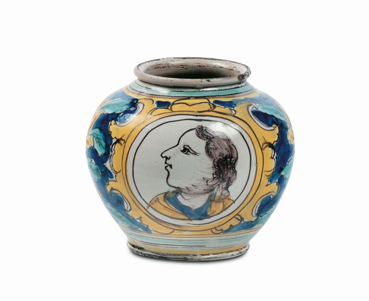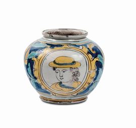 Coppia di bocce in maiolica con decoro a doppio medaglione, Caltagirone XVIII secolo