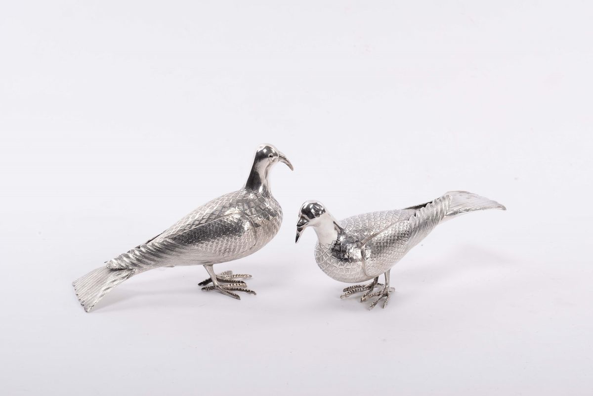 Coppia di colombe in argento
