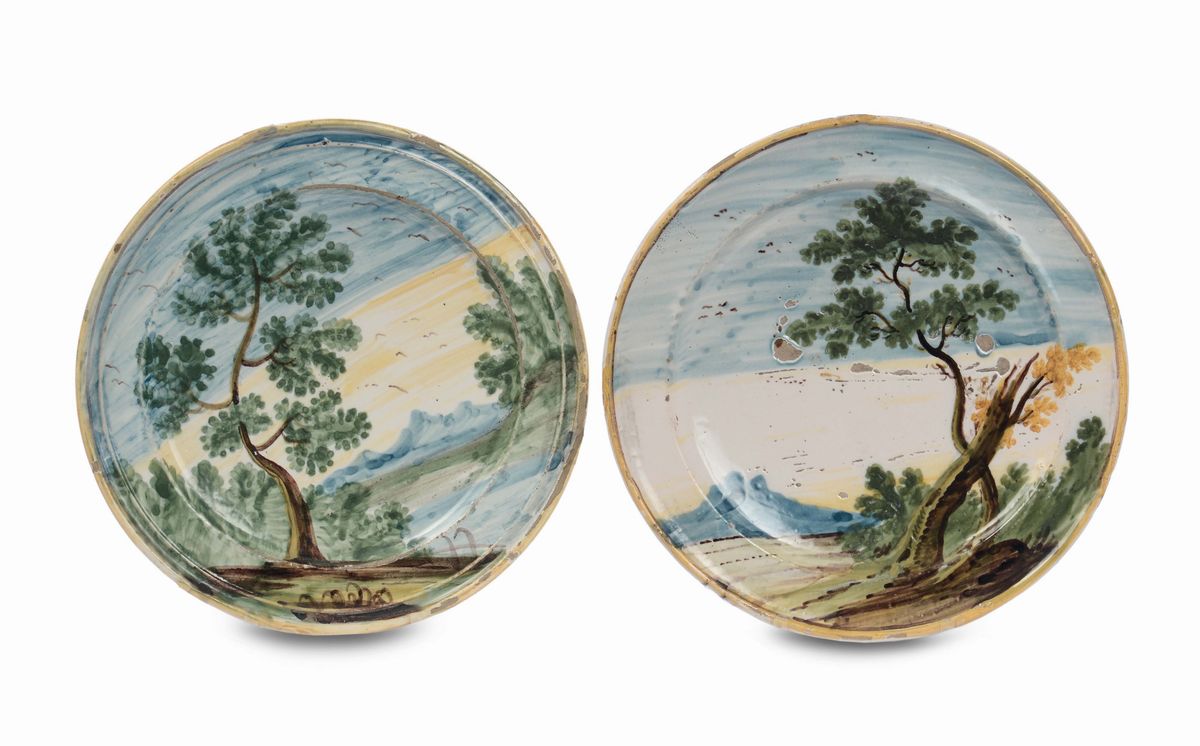 Coppia di piatti in maiolica, Castelli XVIII secolo