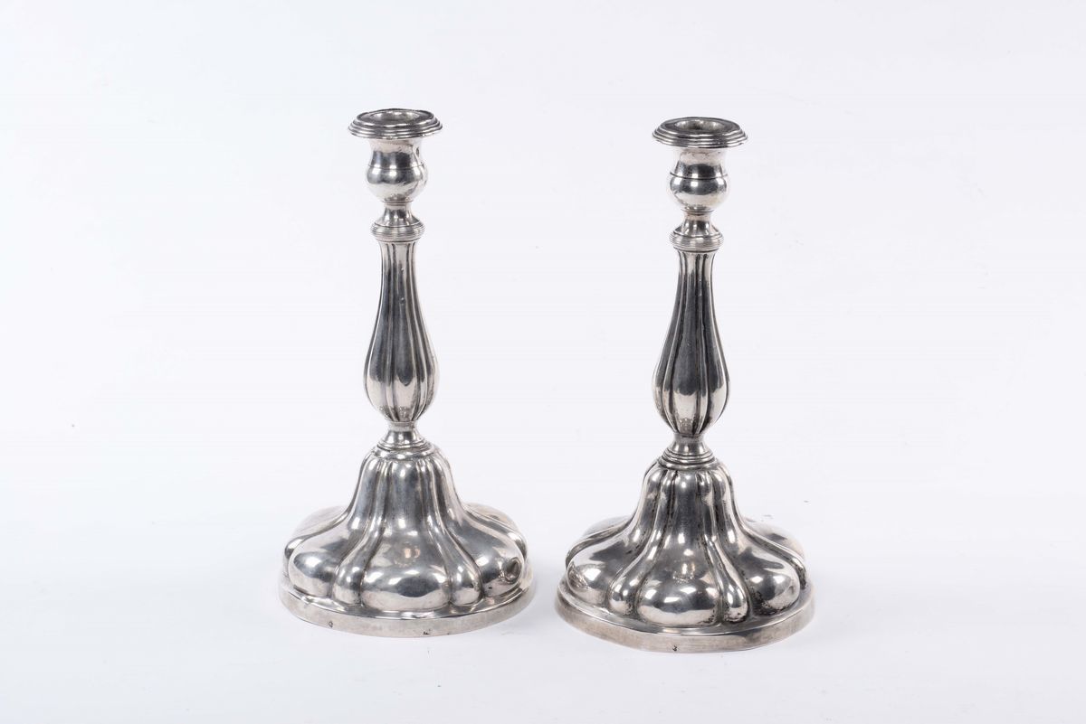 Coppia di portacandele Impero in argento, Roma XIX secolo