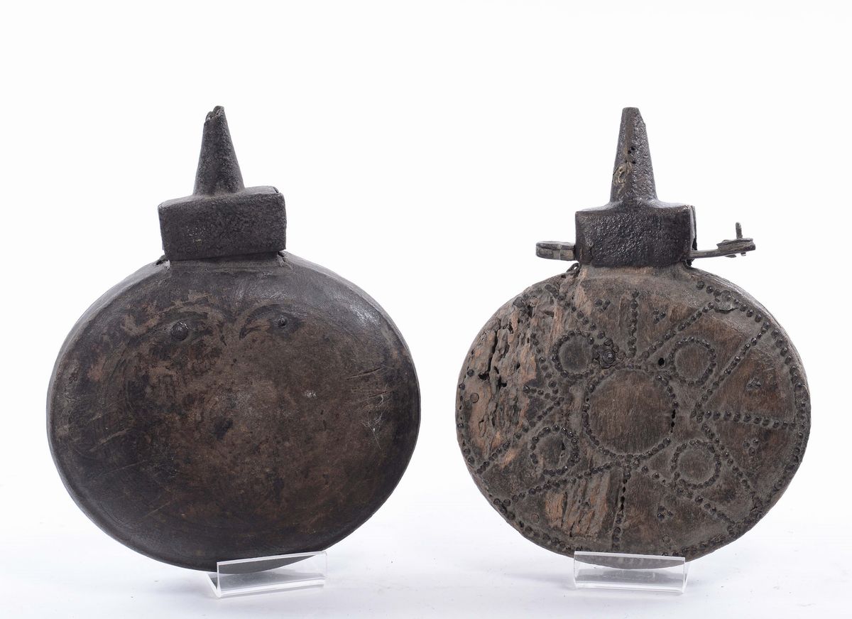 Insieme di due fiasche per la polvere