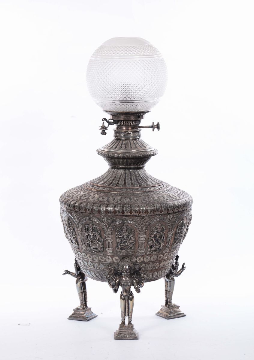 Lampada in rame argentato, India XX secolo