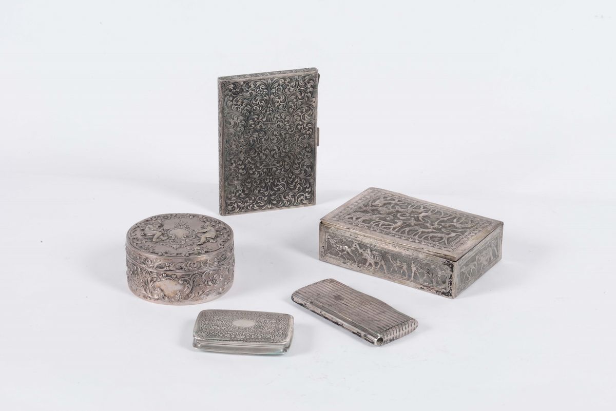 Lotto di cinque scatole differenti in argento