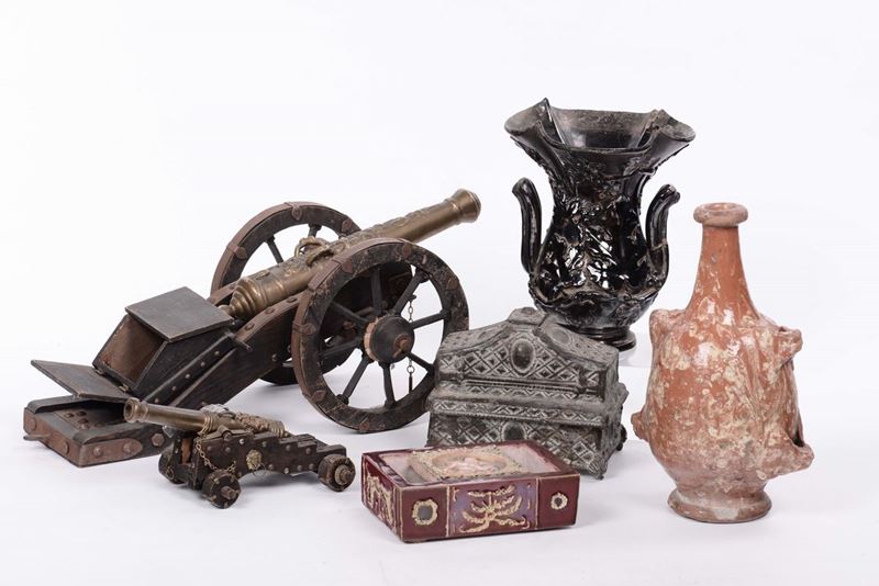 Lotto di oggetti tra cui candelieri, vasetti e altro