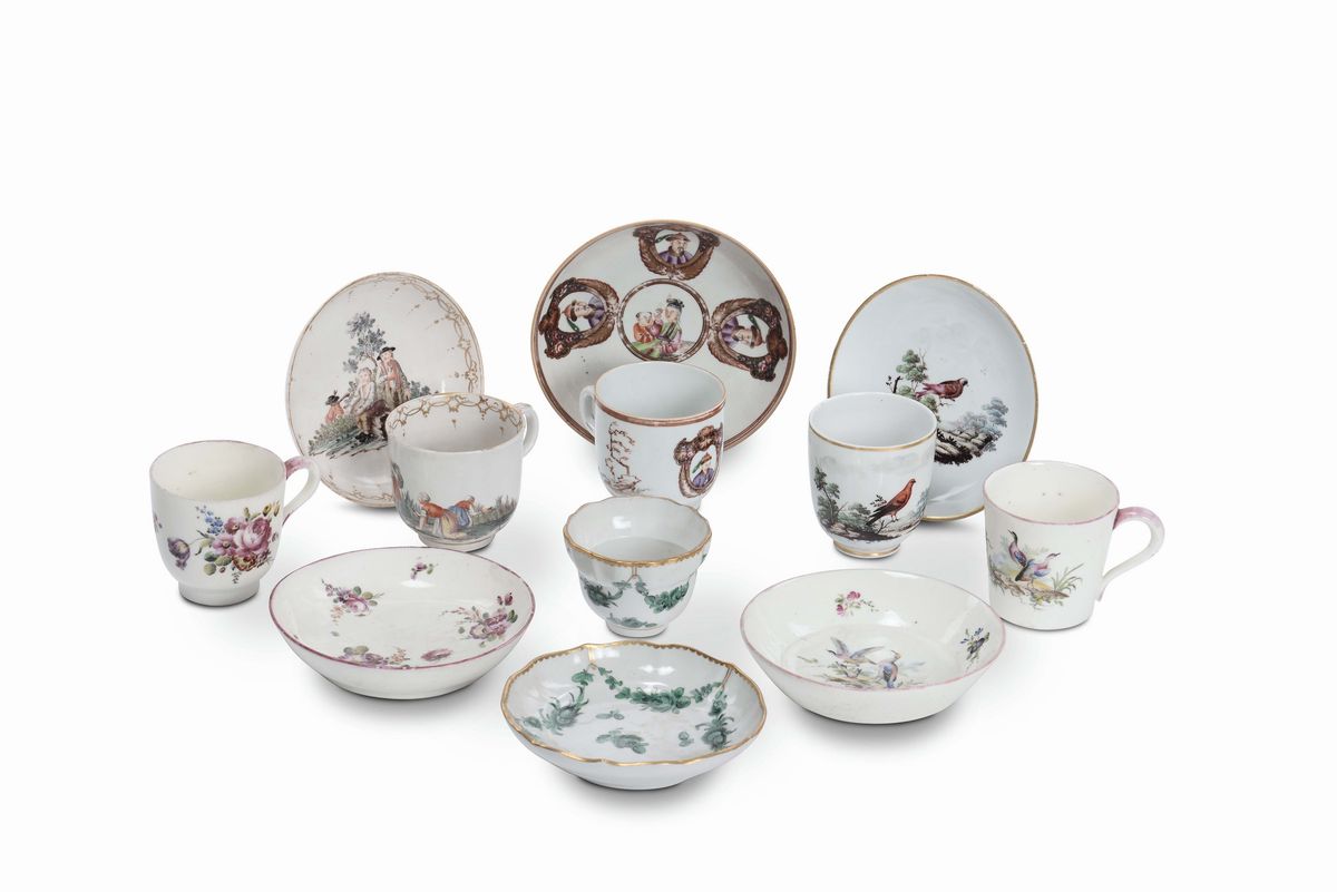 Lotto di sei tazzine in porcellana, fine XVIII secolo-inizio XIX secolo