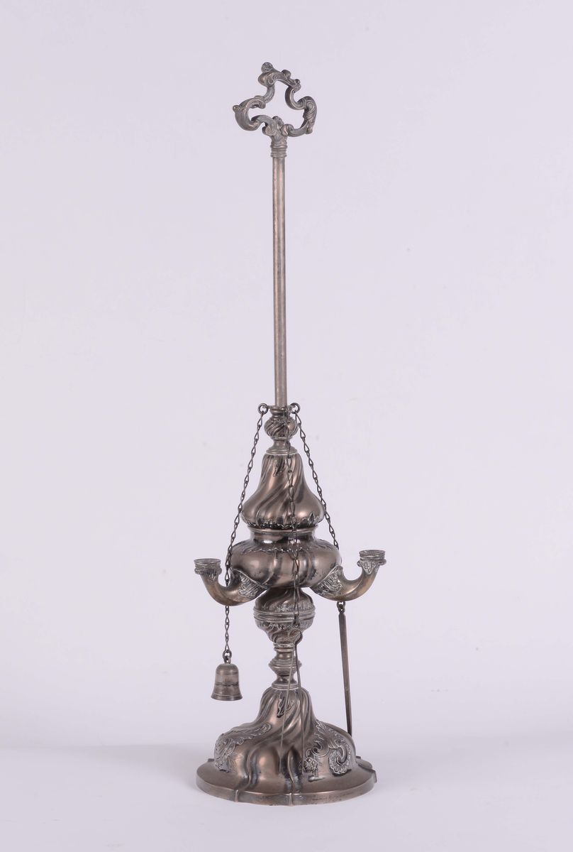 Lucerna in argento in stile barocchetto, XX secolo